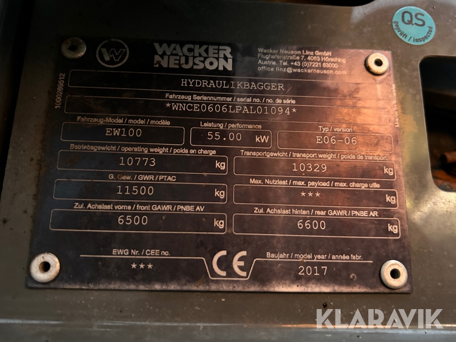 Hjulgrävare med vagn & redskap Wacker Neuson EW100