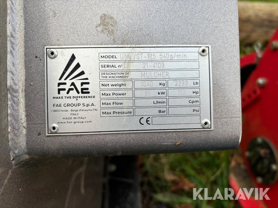 Skogsfräs FAE UML/ ST-175 540 rpm