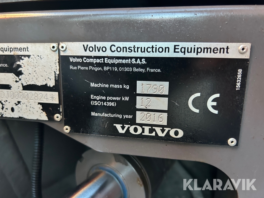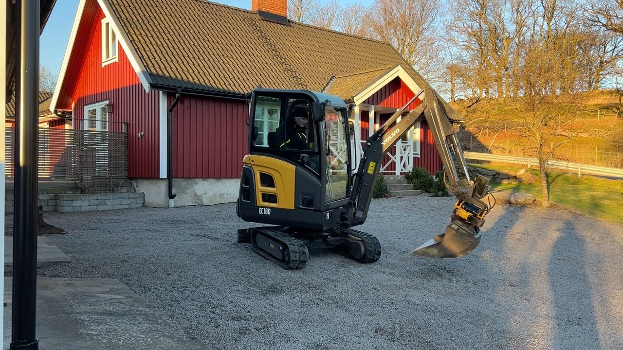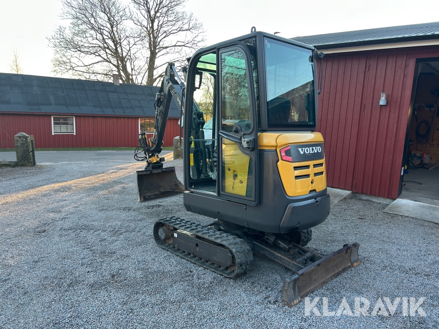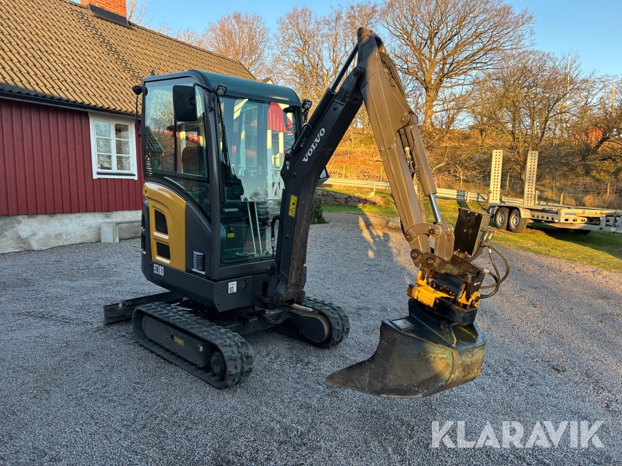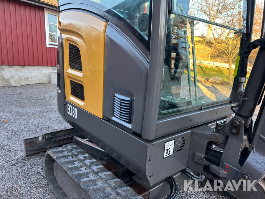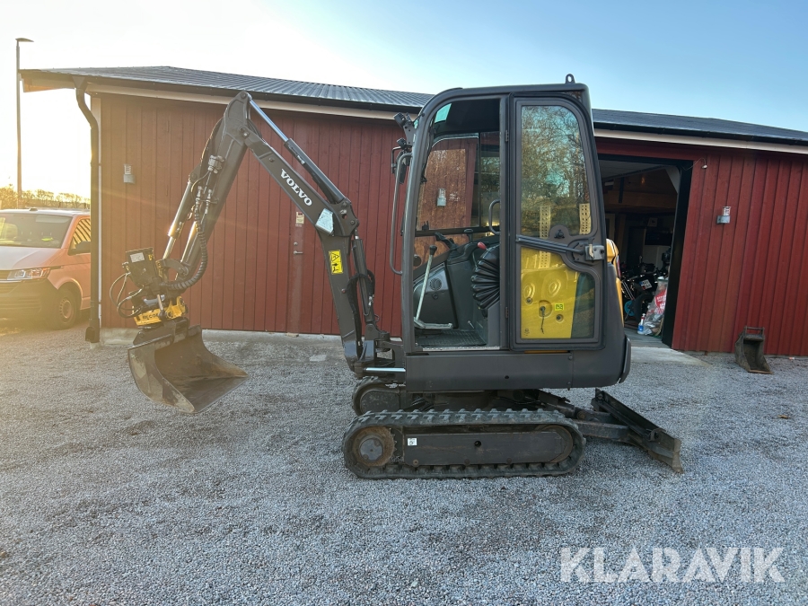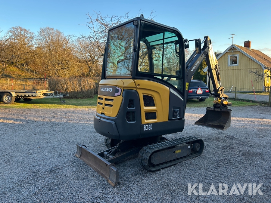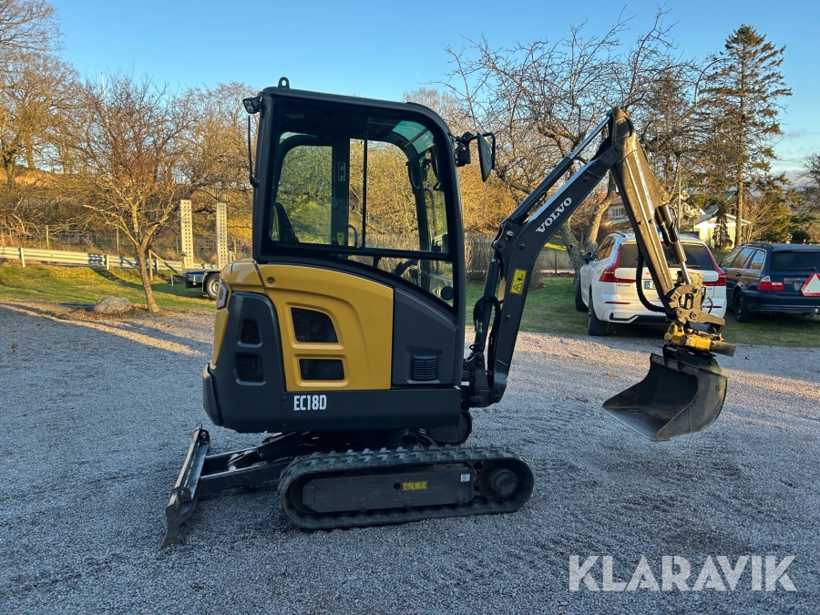 Bandgrävare Volvo EC18D med maskinsläp, tiltrotator och 2 st verktyg