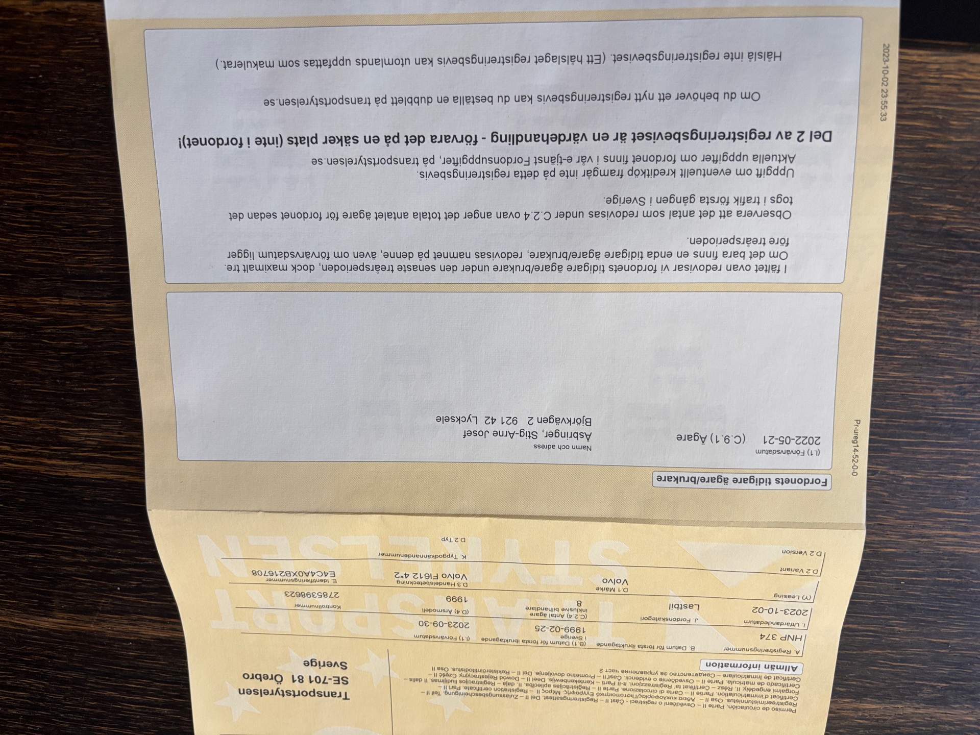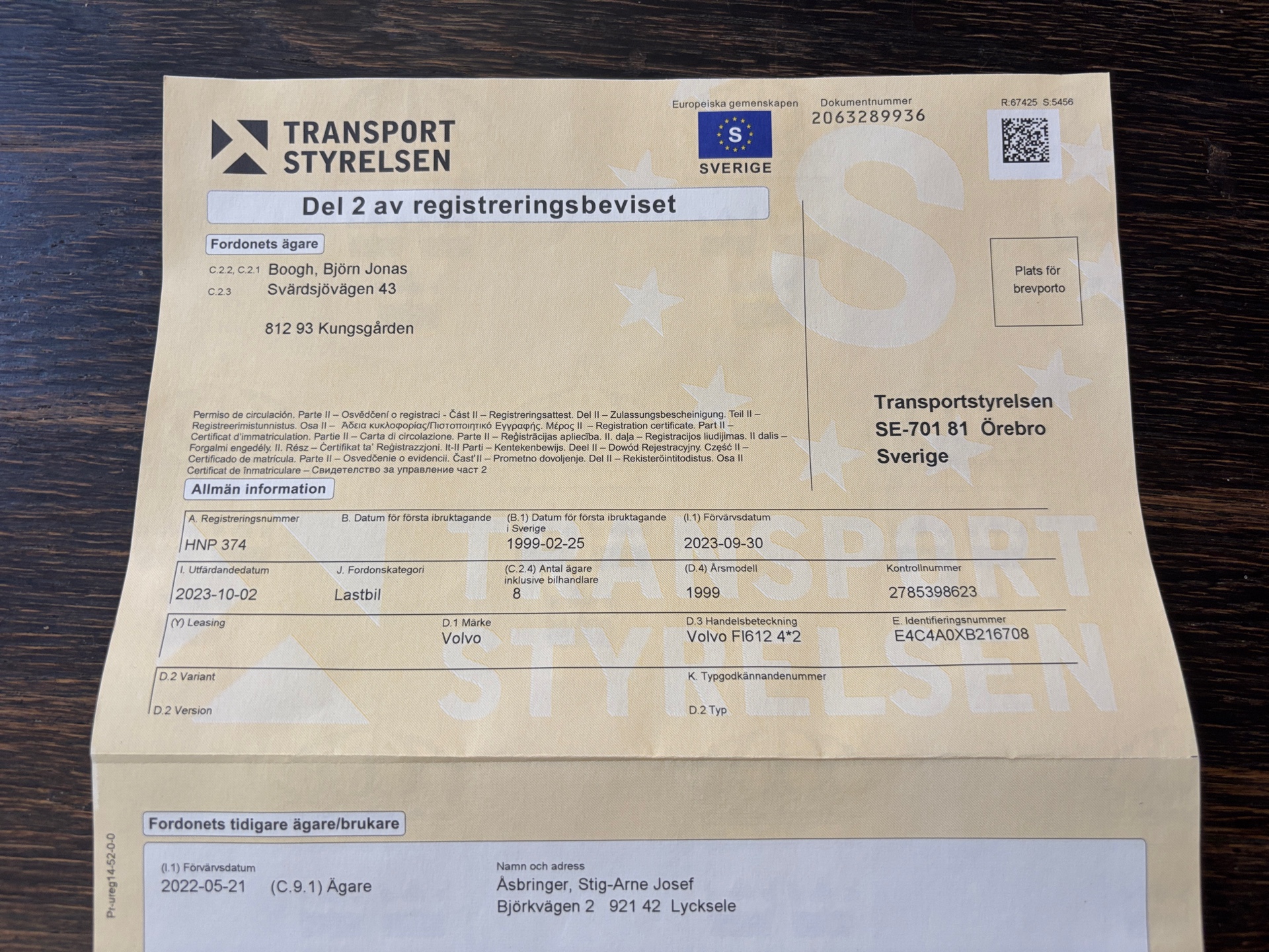 • Serie/chassinummer framgår