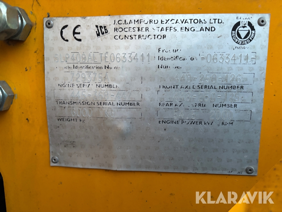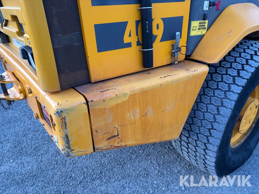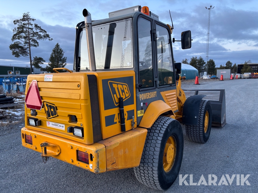 Hjullastare JCB 409 med snöskopa och gafflar