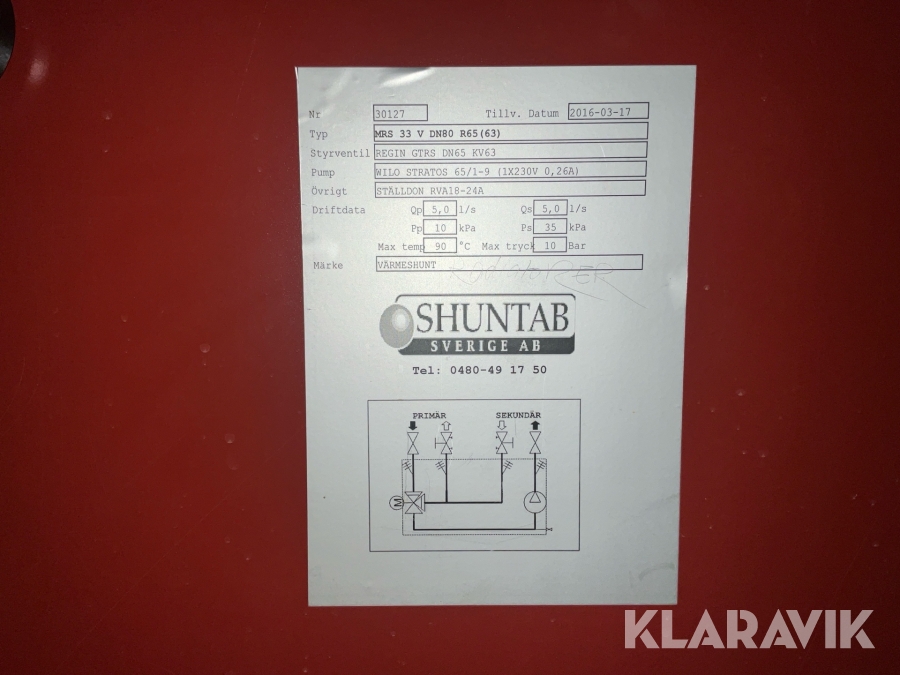Värmeshunt Shuntab MRS 33 V DN65 KV63