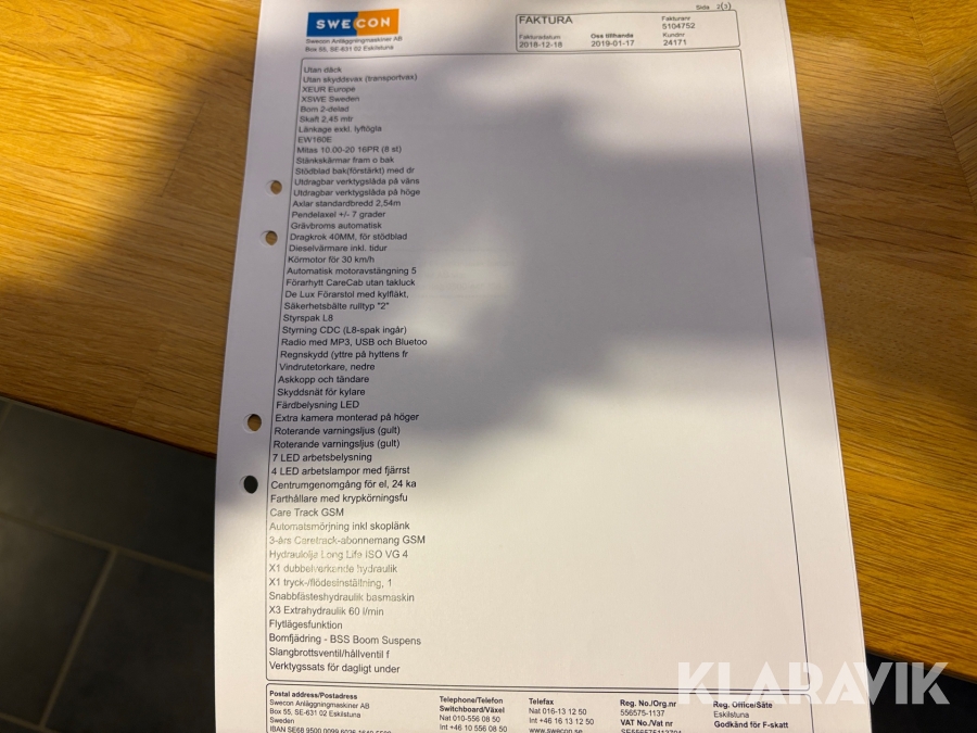 Boka frakt? Det finns ingen specifik information om frakt för just det här objektet, men om du skickar oss en förfrågan via vårt fraktformulär, så undersöker vi möjligheten. Paket, EU-pall eller större maskin? Klaravik har fraktavtal med Schenker och i de fall vi kan hjälpa till med frakt gäller det objekt som ryms i paket eller inom en EU-pall (upp till 120*80 cm och 990 kg). Det går att beställa frakt inom Sverige, dock inte till utlandet. Vid frakt på större maskiner rekommenderar vi gärna transportföretag som du kan kontakta.