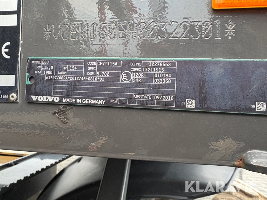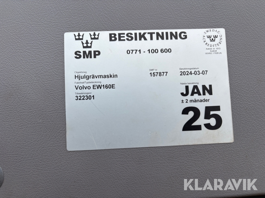 Hjulgrävare Volvo EW160E GPS, Vagn, 5 redskap