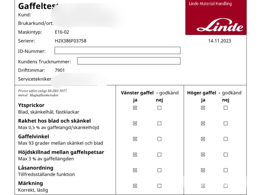 • Serie/chassinummer framgår