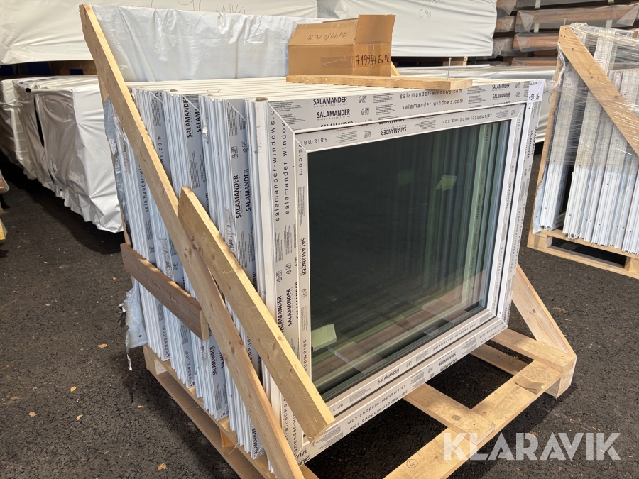 Plastfönster Salamander 9 st, öppningsbara o fasta