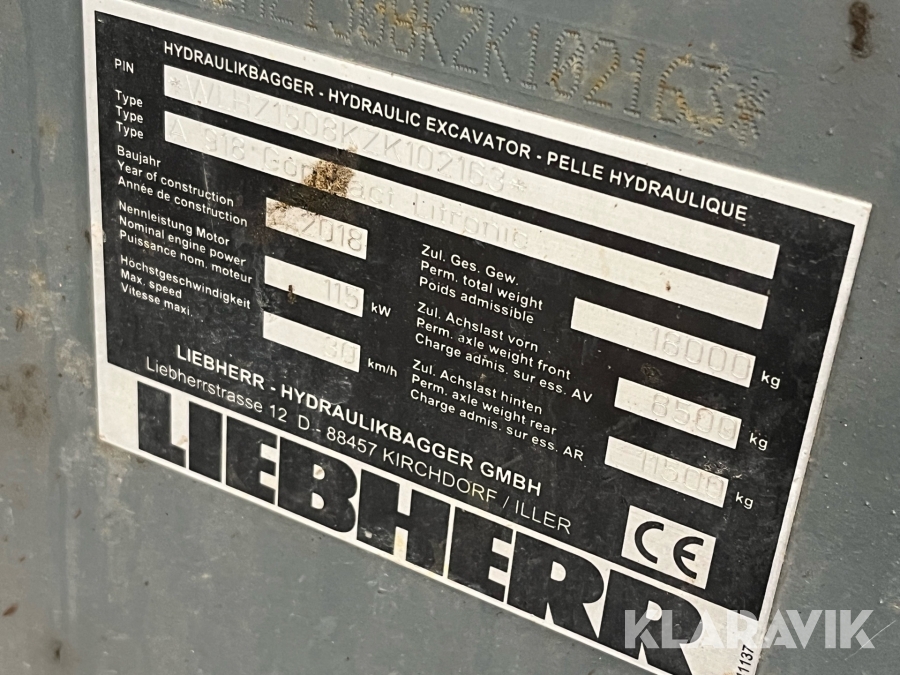 Grävmaskin Liebherr A 918 Compact med vagn och tillbehör