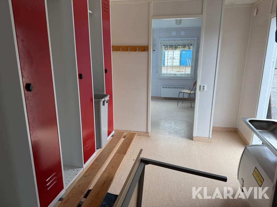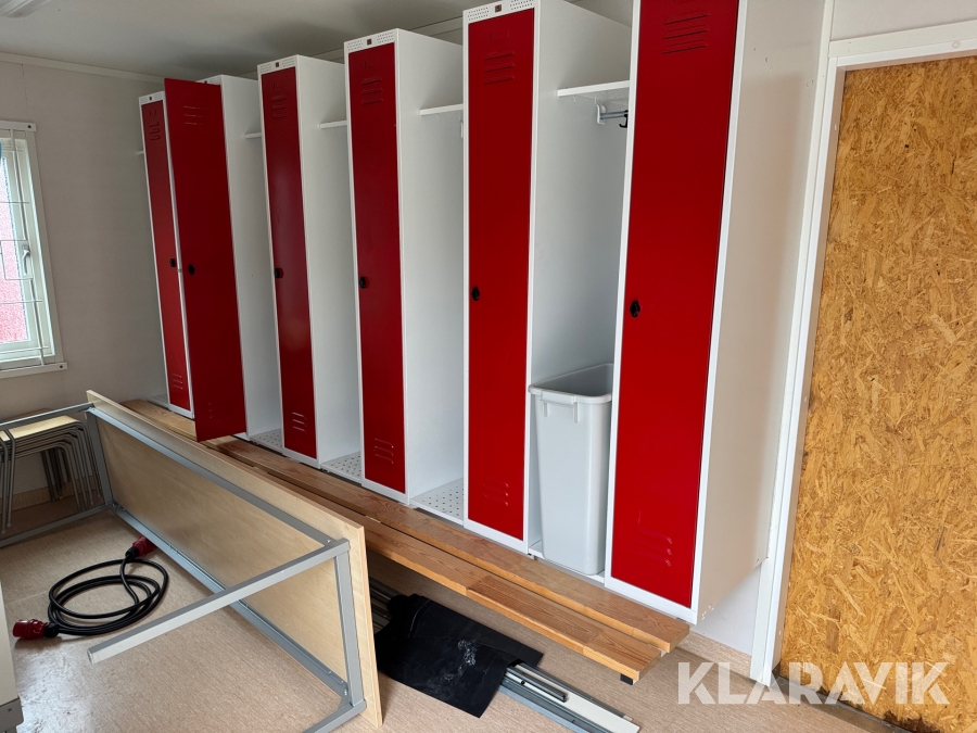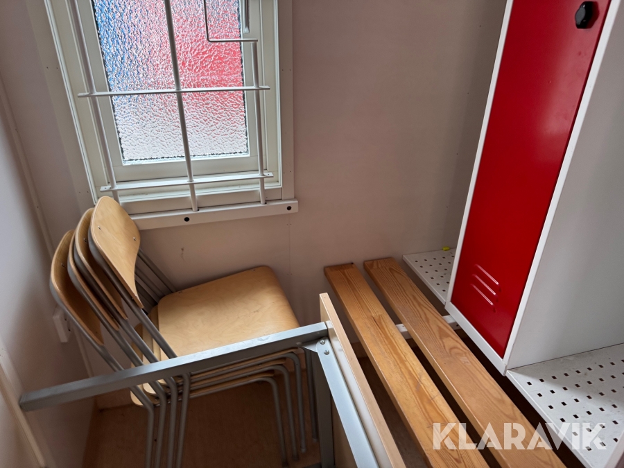 Mat och omklädningsplats för sex personer.
