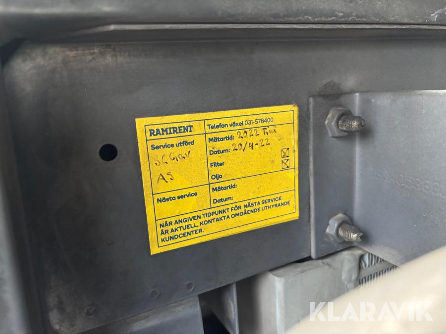 Läs om metodikenPga platsbrist är det viktigt att du som köpare hämtar inom 12 dagar från auktionsavslut. Vid frågor om frakt kontakta trade@ramirent.se.