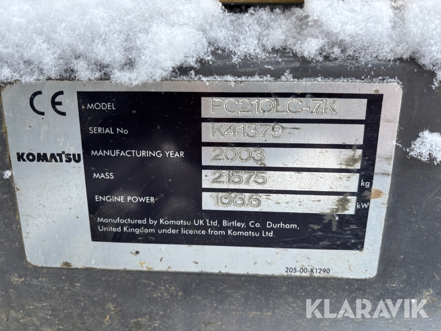 Grävmaskin Komatsu PC210LC-7K med tiltrotator och redskap