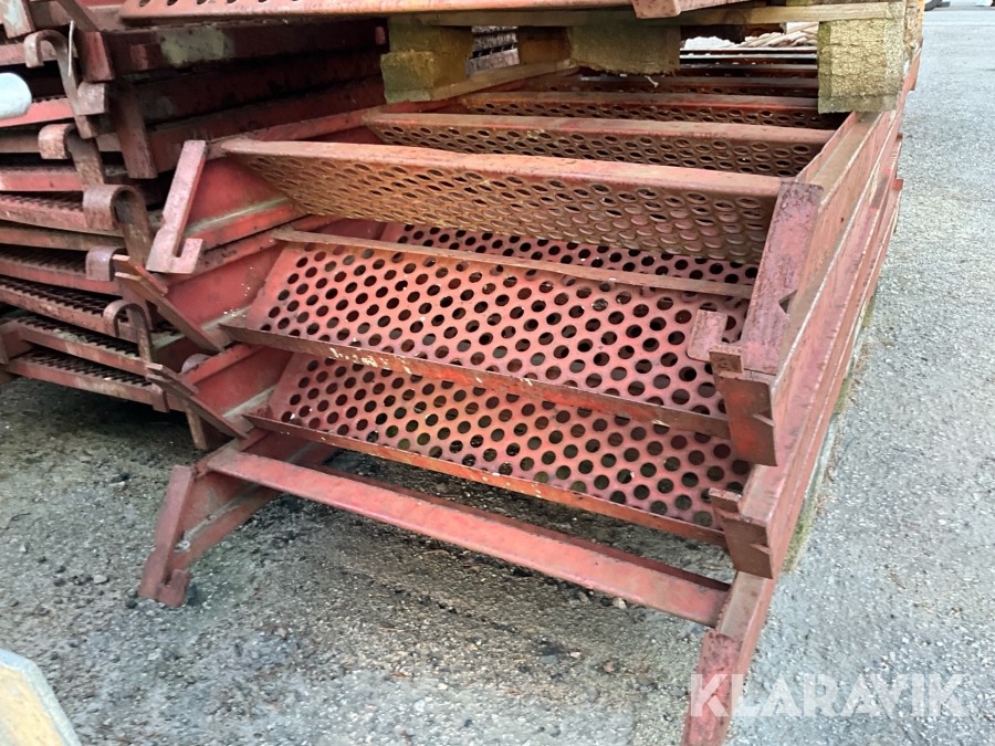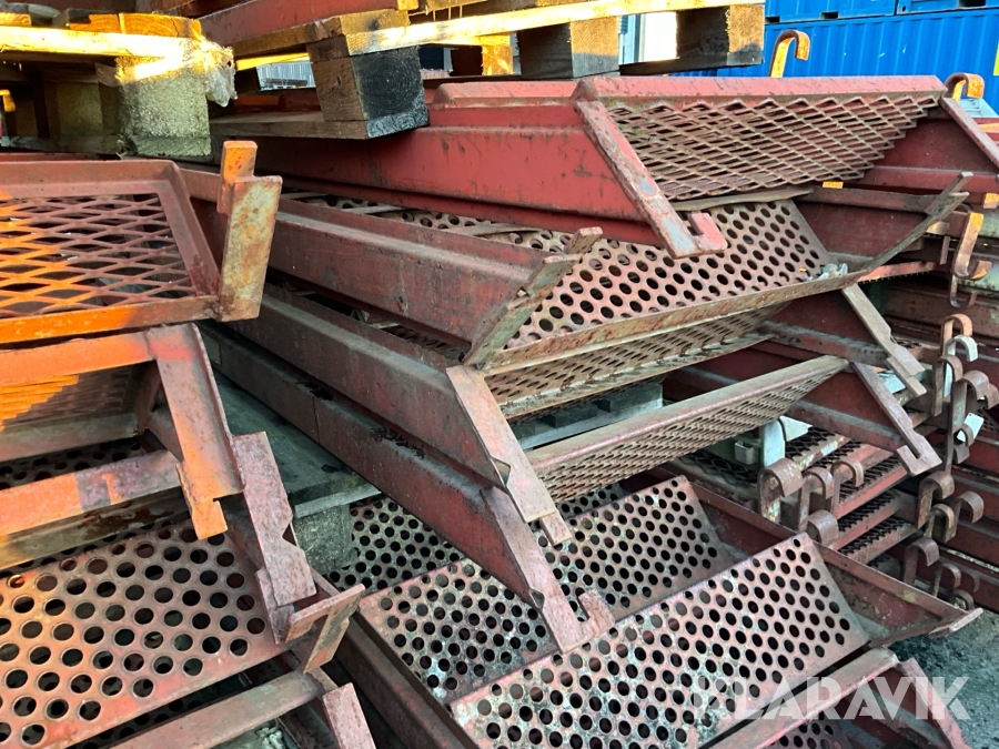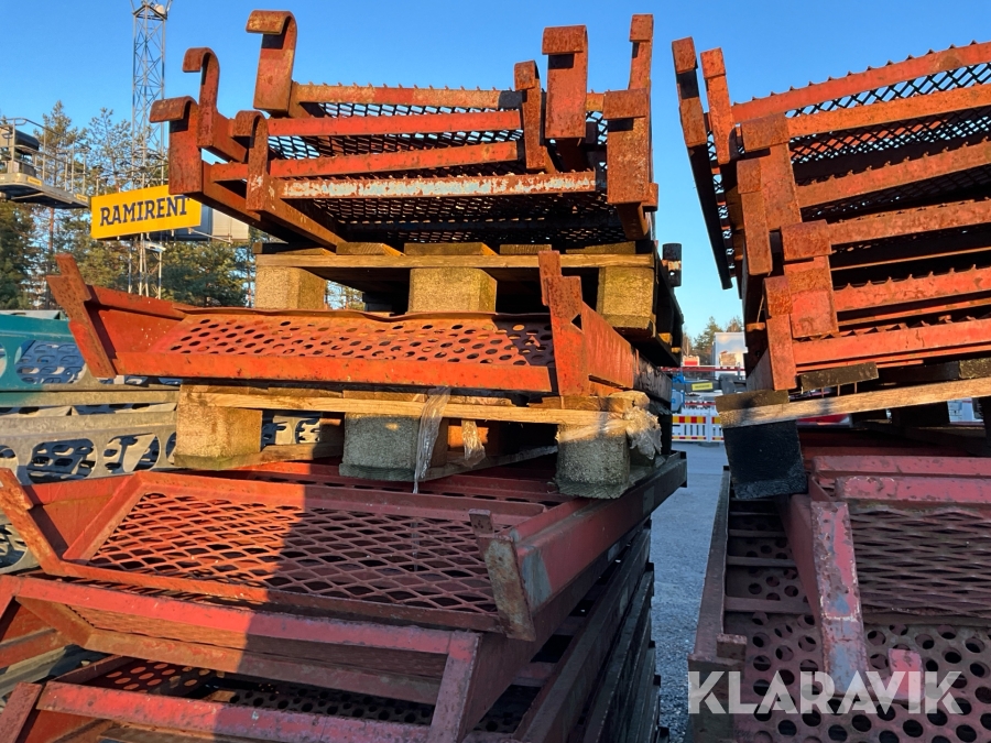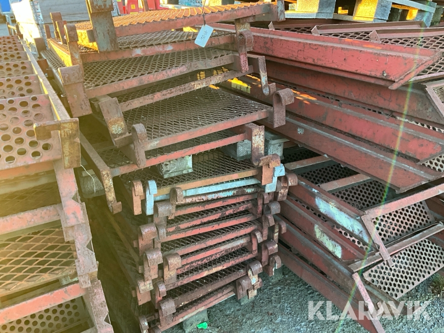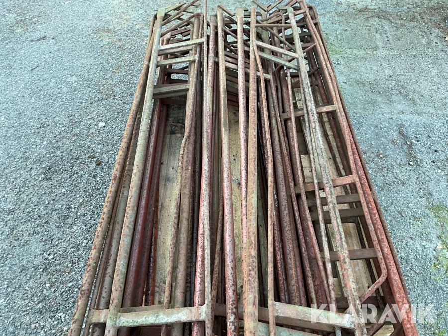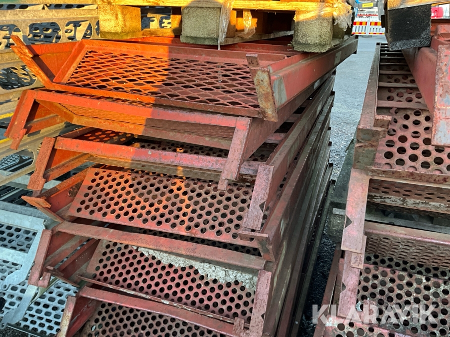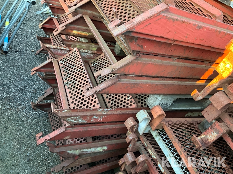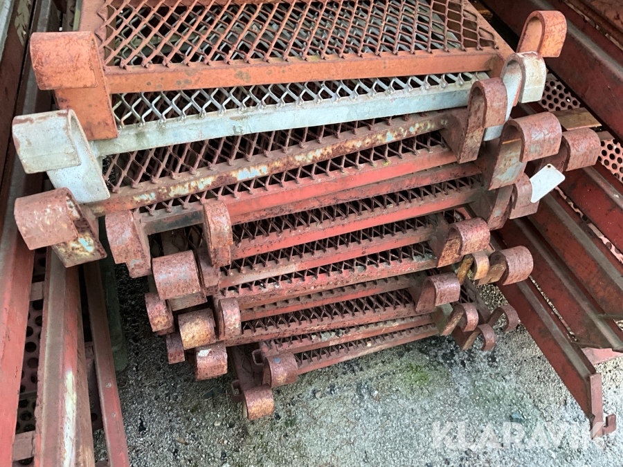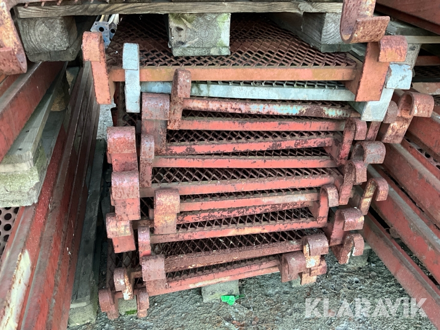 Obs endast det röda ställningsmaterialet i stål ingår i auktionen. Annat material runtomkring ingår ej.