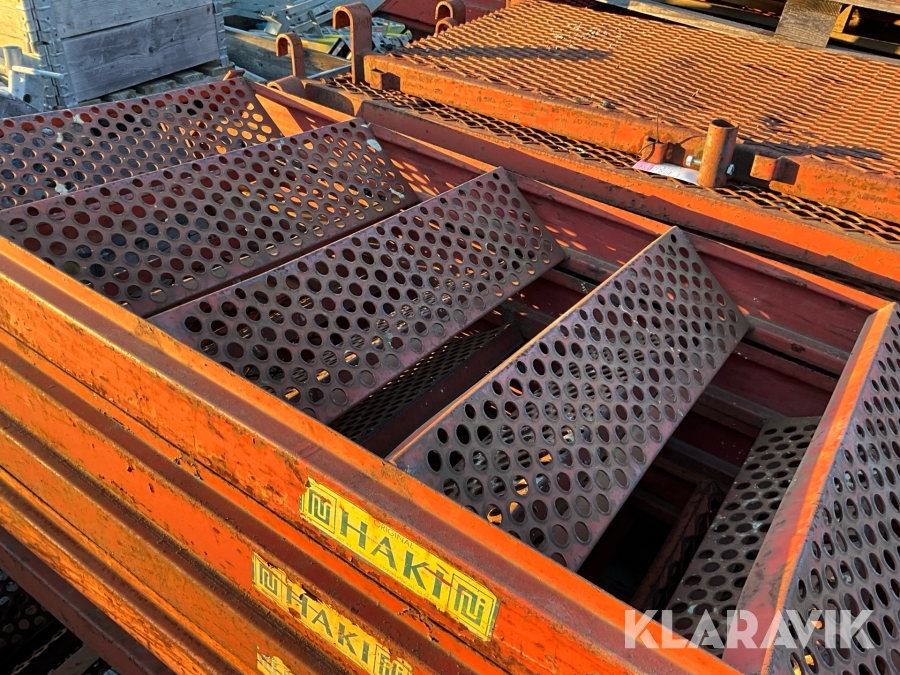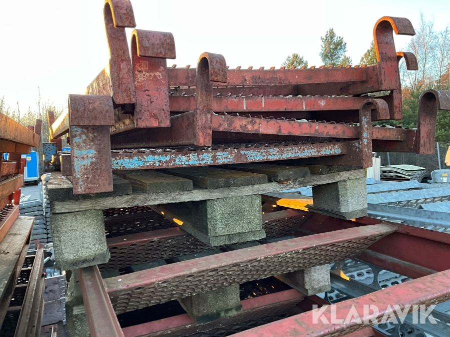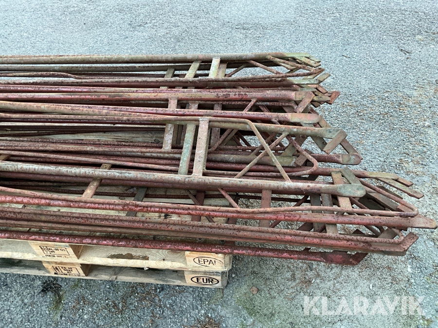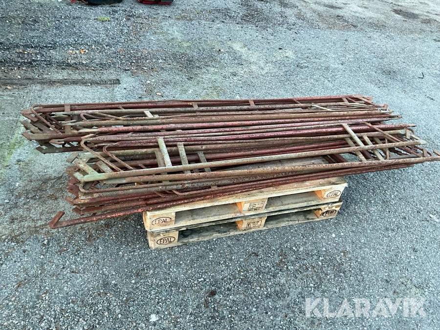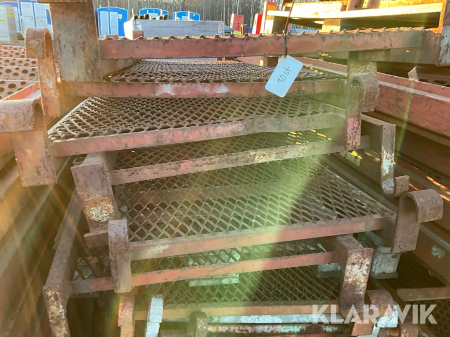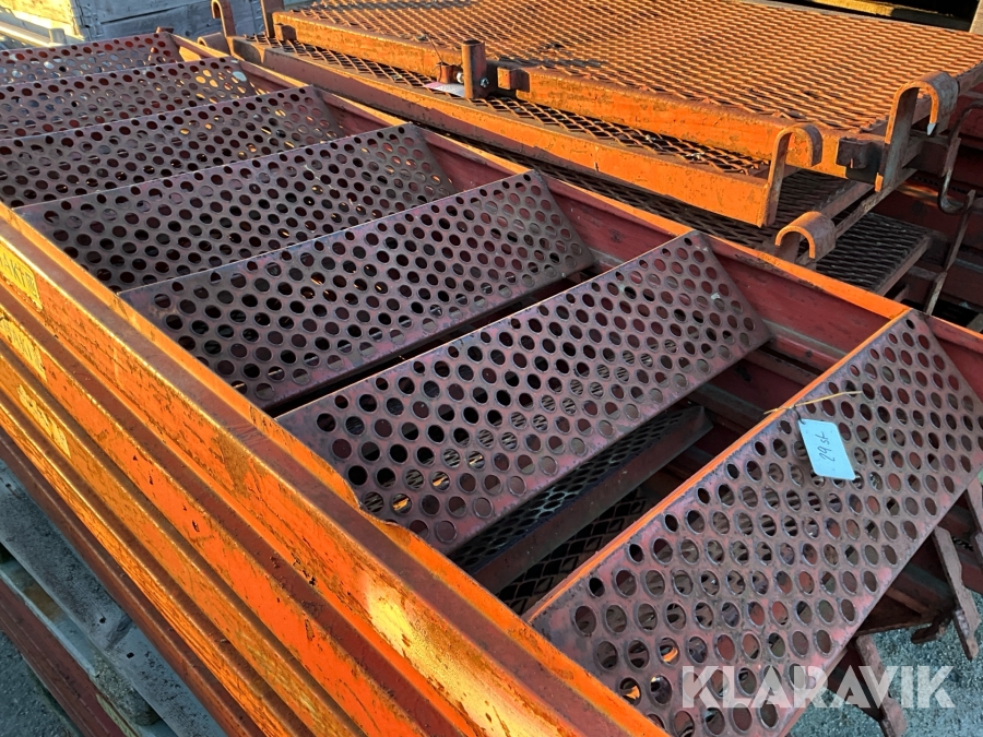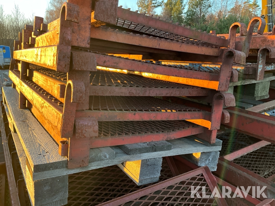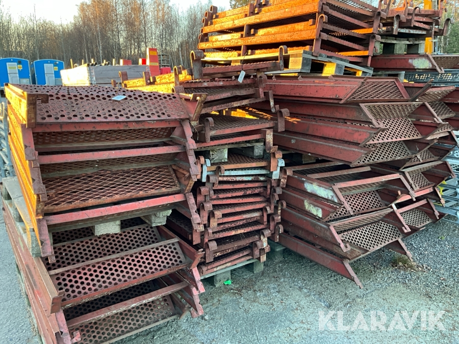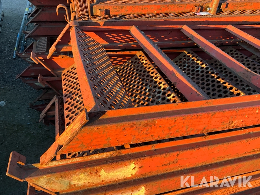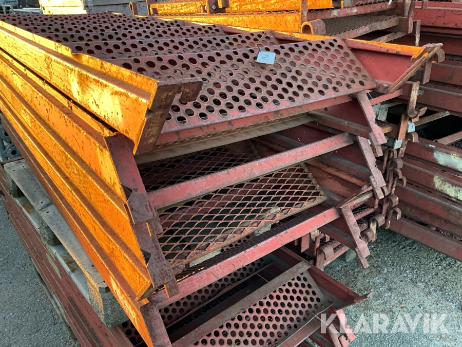 Obs endast det röda ställningsmaterialet i stål ingår i auktionen. Annat material runtomkring ingår ej.