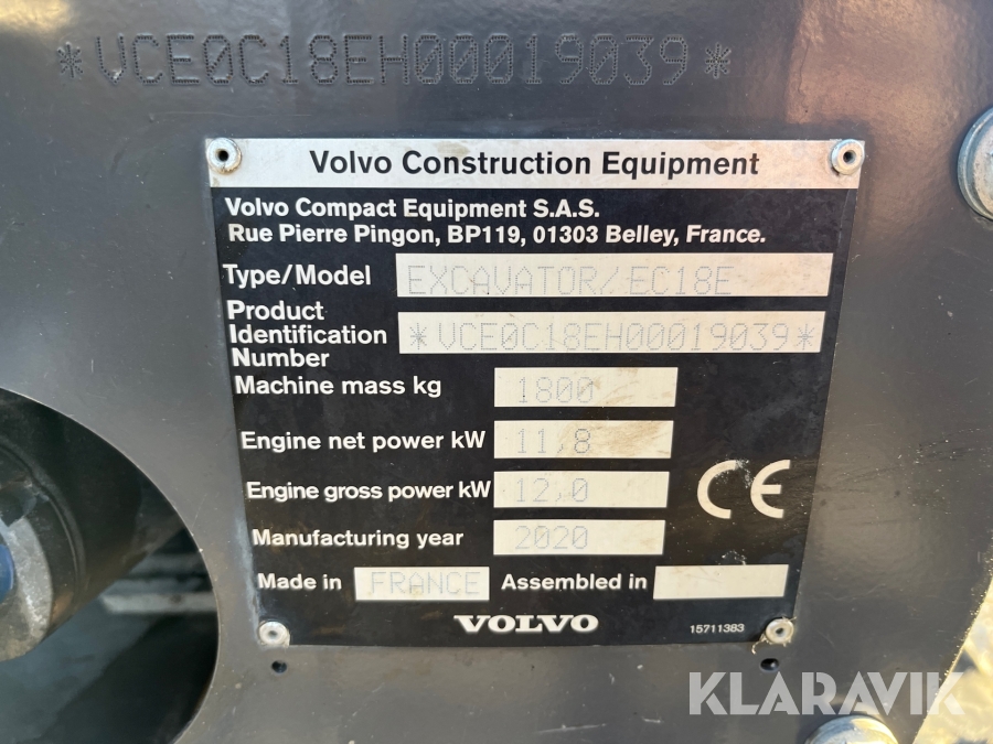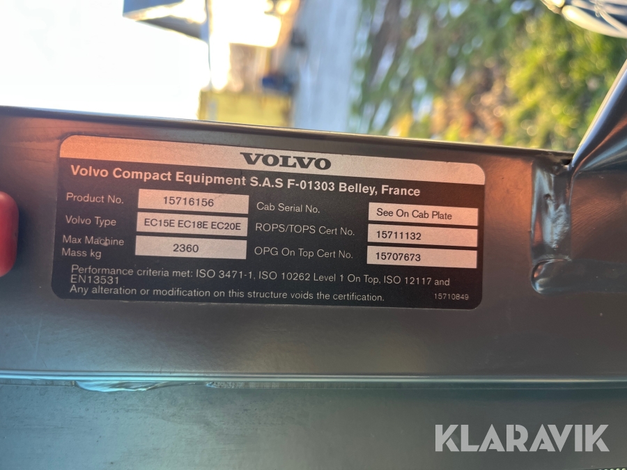Grävmaskin Volvo EC18E med tilthuvud & redskap
