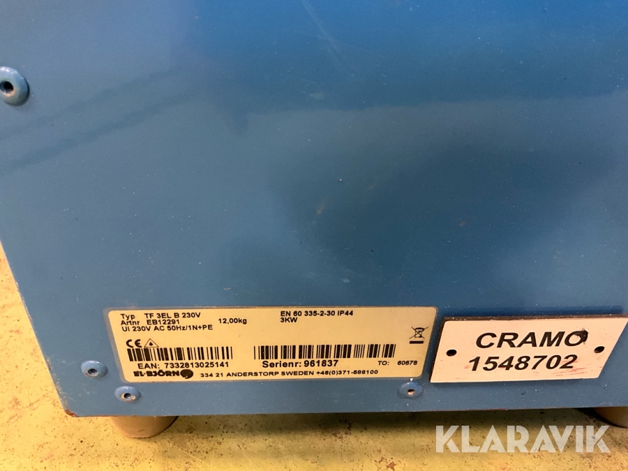 Hämtning av betalda objekt är endast möjligt helgfri MÅNDAG och TISDAG mellan 07:30-15:00. Säljaren har stängt 09:00-09:30 och 12:30-13:00.