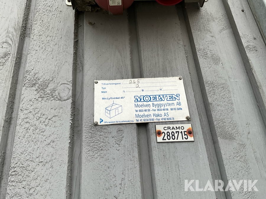 For sheds and containers (10 feet and larger), loading assistance can be purchased. Payment is made either by invoice or by card at the seller's location. The cost per lift is SEK 500 + VAT.