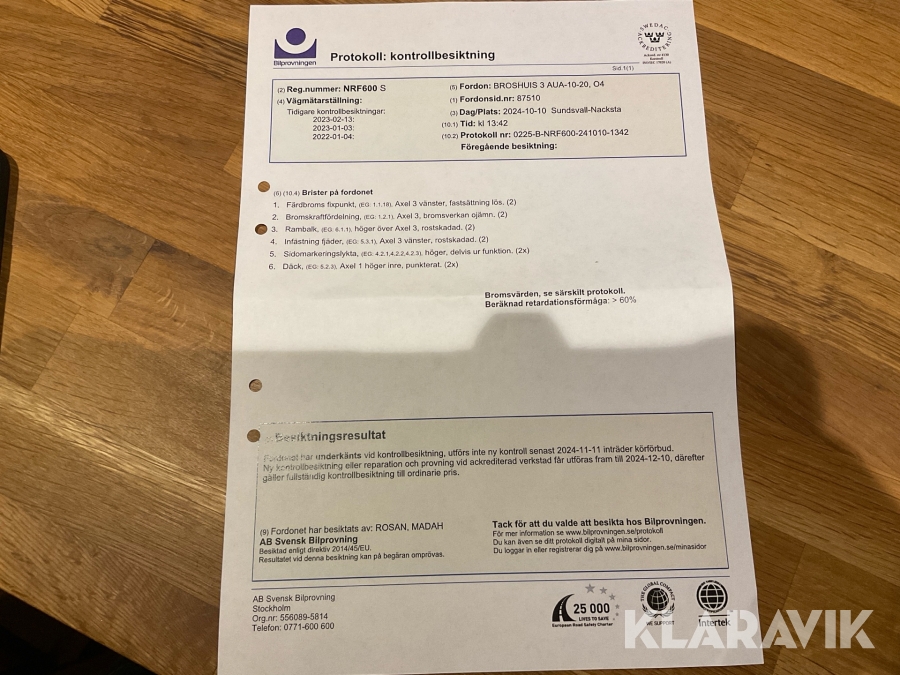 Du som köpare är skyldig att kontrollera objektet vid hämtning. Skiljer sig något avsevärt jämfört med informationen på klaravik.se? Kontakta då Klaravik innan du tar objektet från platsen. Läs fullständiga köpvillkor.