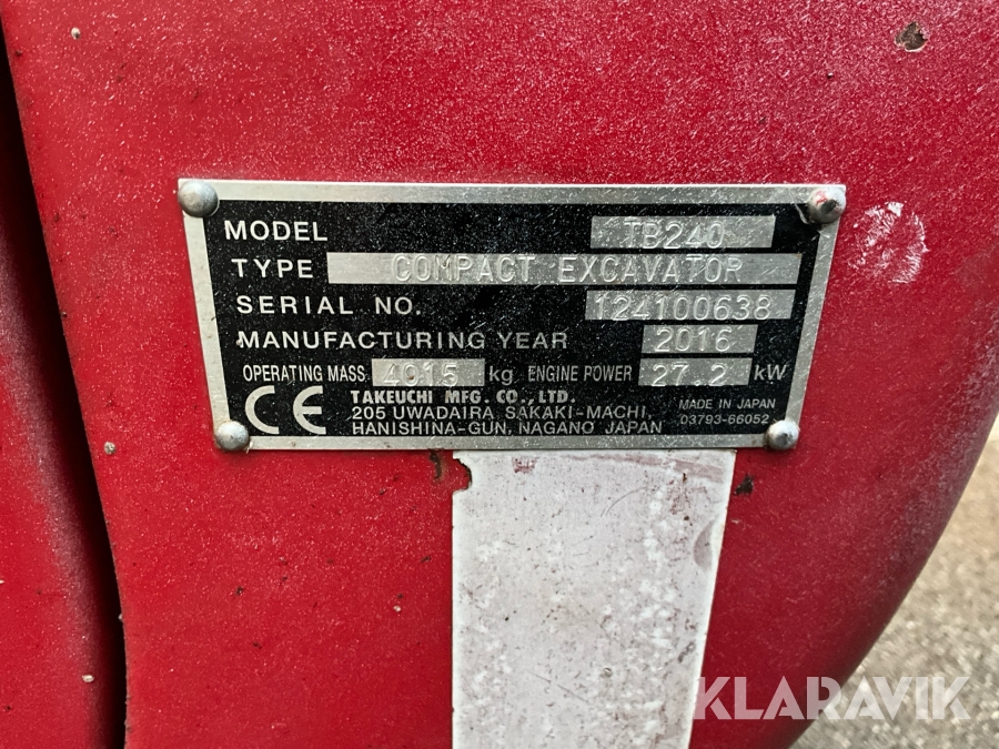 Grävmaskin Takeuchi TB240 med Engcon tiltrotator