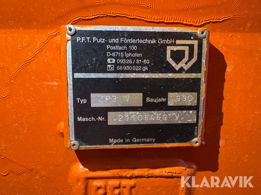 Betongpump P.F.T. ZP3V med slang