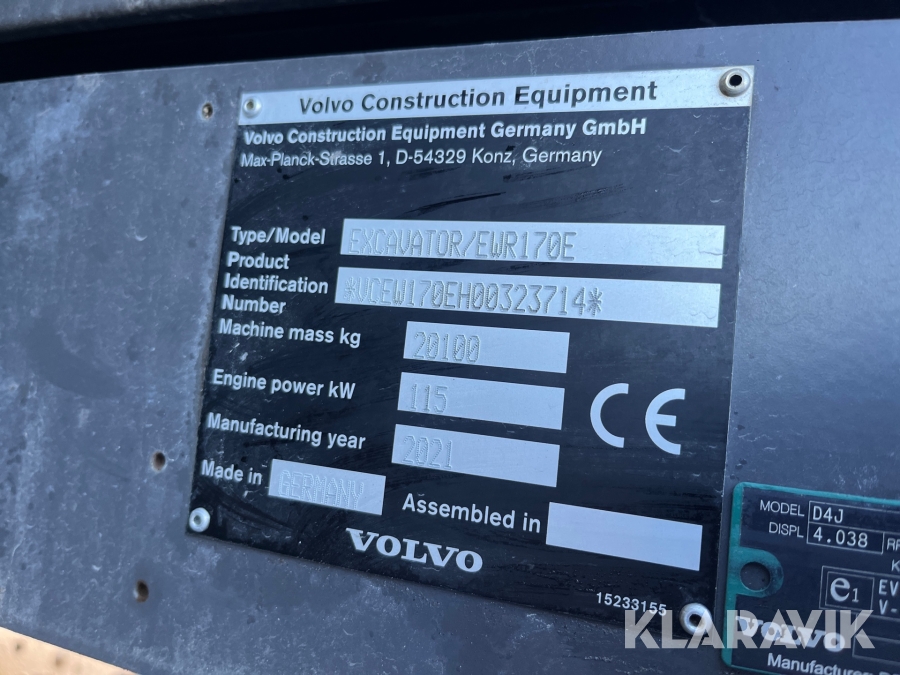 Grävmaskin Volvo EWR170E med grävsystem
