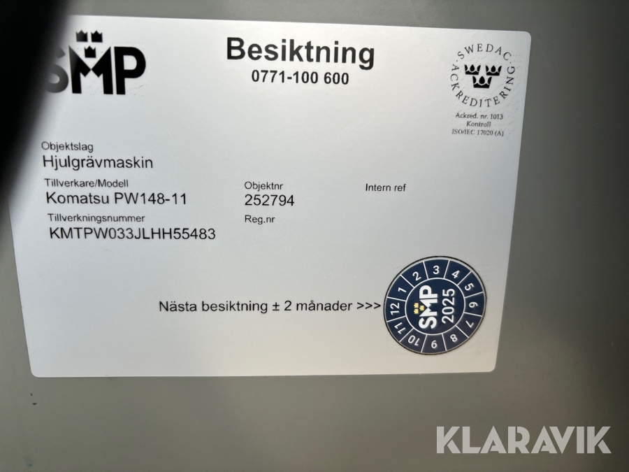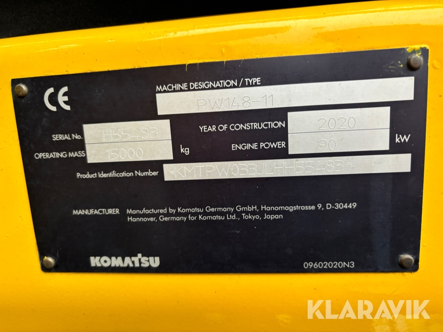 Hjulgrävmaskin Komatsu PW 148-11 med GPS, tiltrotator och en skopa