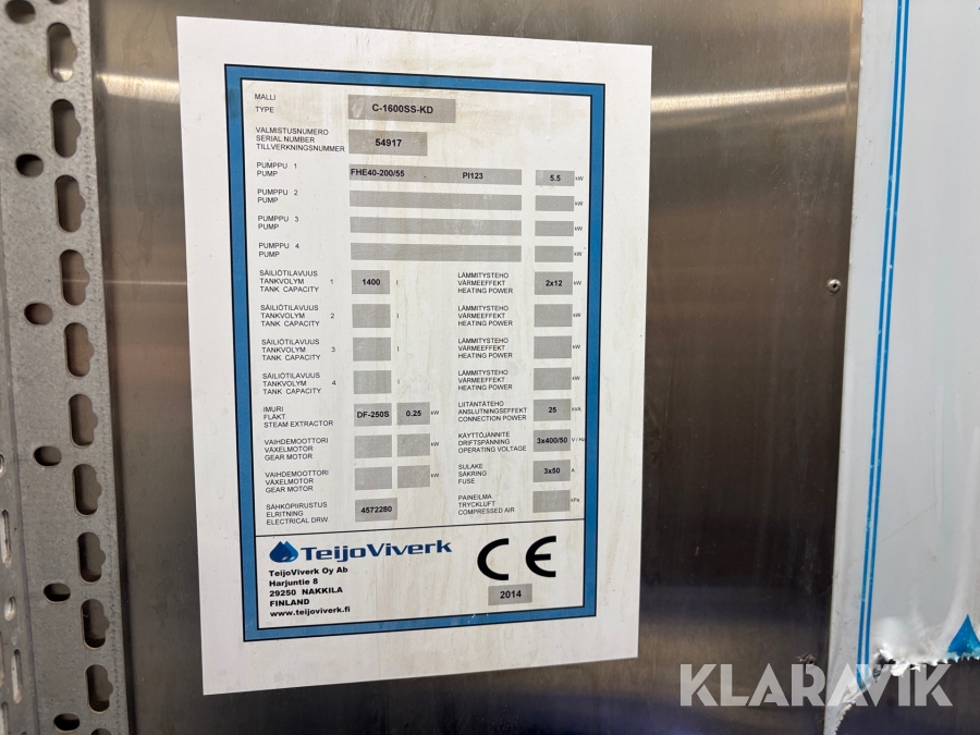 Kabintvättmaskin Teijo C-1600SS-KD