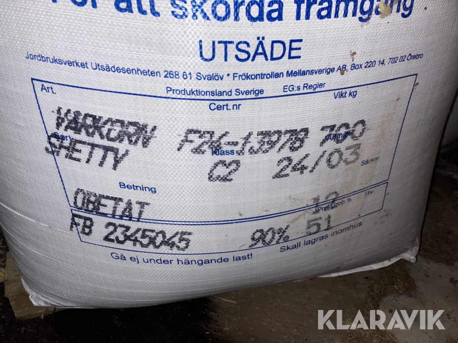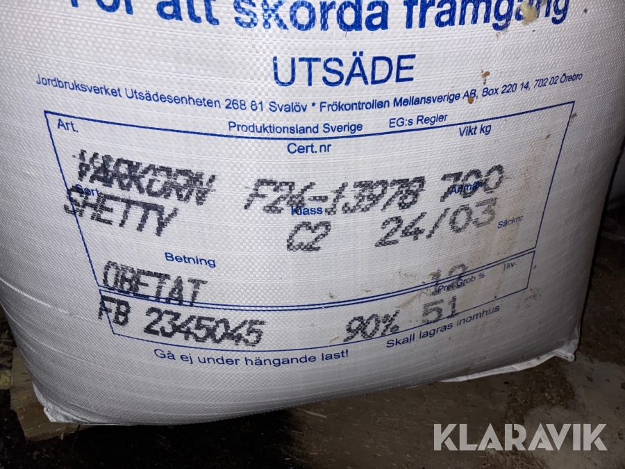 Utsäde Svenska Foder Vårkorn shetty 700kg