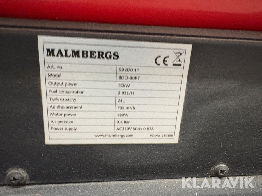 Dieselvärmare Malmberg Bdo-30RT 30 kW
