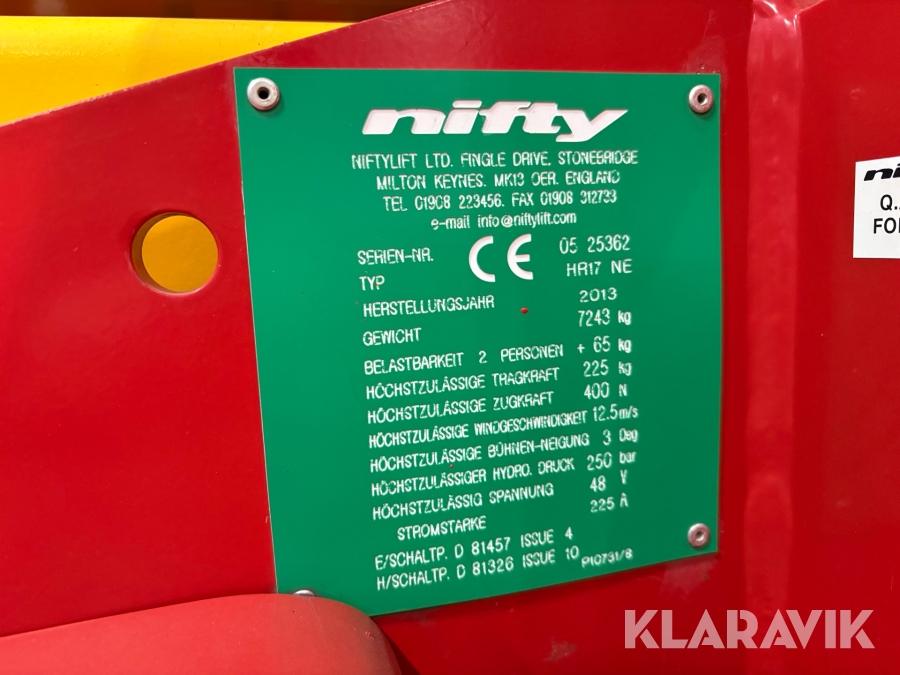 Vikbomslift Niftylift HR17 NE med batteridrift