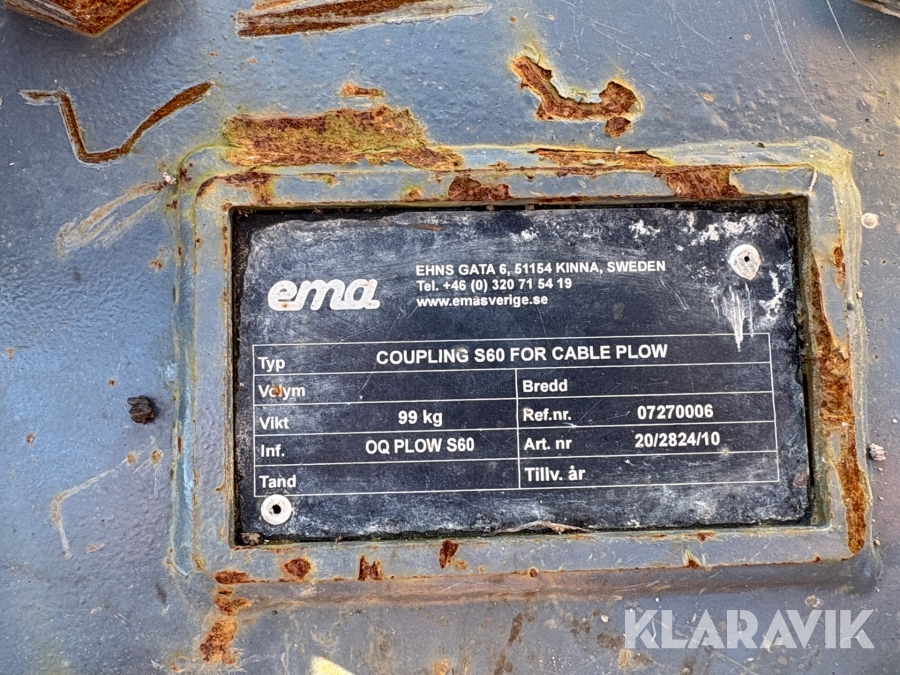 Boka frakt? Det finns ingen specifik information om frakt för just det här objektet, men om du skickar oss en förfrågan via vårt fraktformulär, så undersöker vi möjligheten. Paket, EU-pall eller större maskin? Klaravik har fraktavtal med Schenker och i de fall vi kan hjälpa till med frakt gäller det objekt som ryms i paket eller inom en EU-pall (upp till 120*80 cm och 990 kg). Det går att beställa frakt inom Sverige, dock inte till utlandet. Vid frakt på större maskiner rekommenderar vi gärna transportföretag som du kan kontakta.