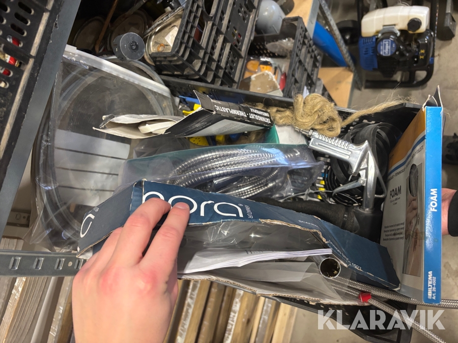 Hylla med diverse material