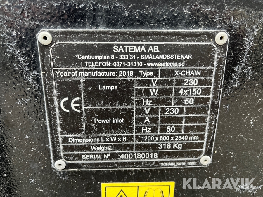 Boka frakt? Det finns ingen specifik information om frakt för just det här objektet, men om du skickar oss en förfrågan via vårt fraktformulär, så undersöker vi möjligheten. Paket, EU-pall eller större maskin? Klaravik har fraktavtal med Schenker och i de fall vi kan hjälpa till med frakt gäller det objekt som ryms i paket eller inom en EU-pall (upp till 120*80 cm och 990 kg). Det går att beställa frakt inom Sverige, dock inte till utlandet. Vid frakt på större maskiner rekommenderar vi gärna transportföretag som du kan kontakta.