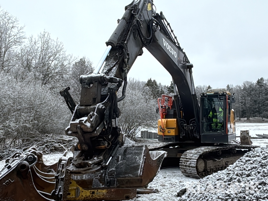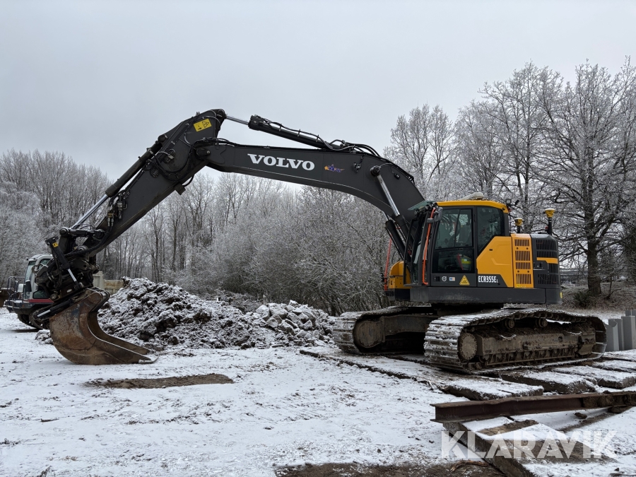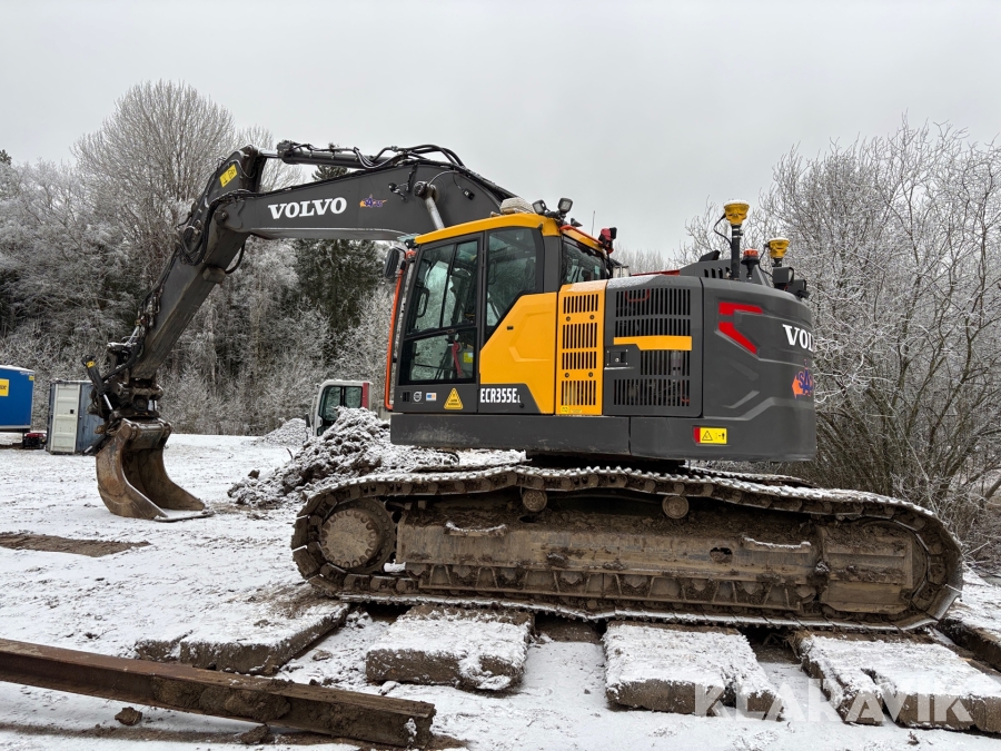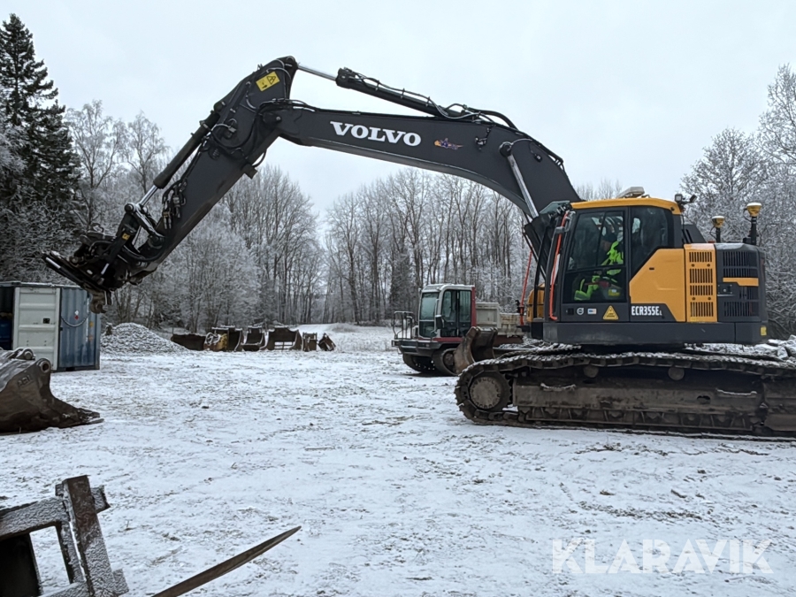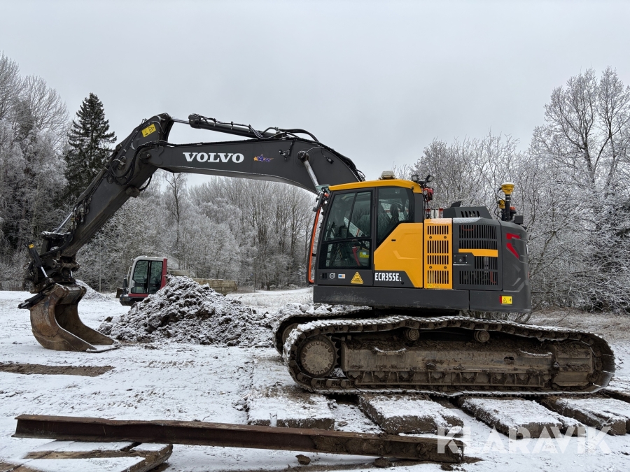 Grävmaskin Volvo ECR355EL med komplett 3d grävsystem, tiltrotator & redskap, container med tank