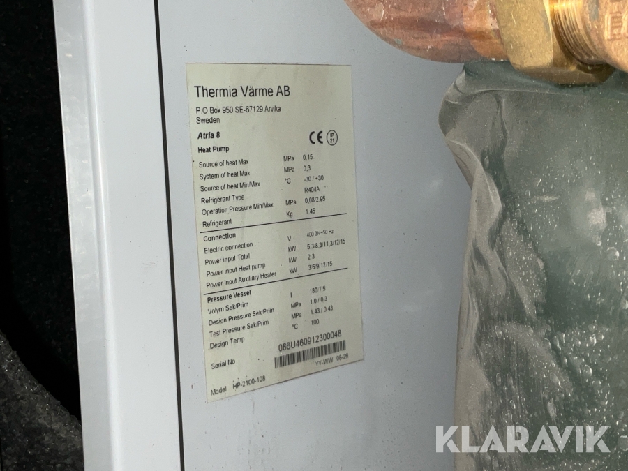 Värmepump Thermia Atria 8 med utedel