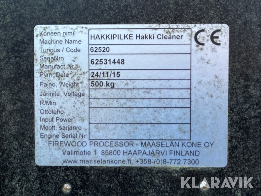 Renstrumma med transportör Hakkipilke Hakki cleaner