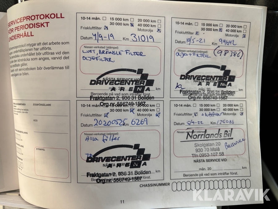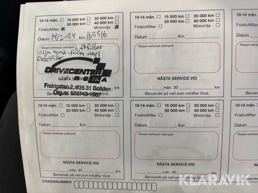 • Serie/chassinummer framgår