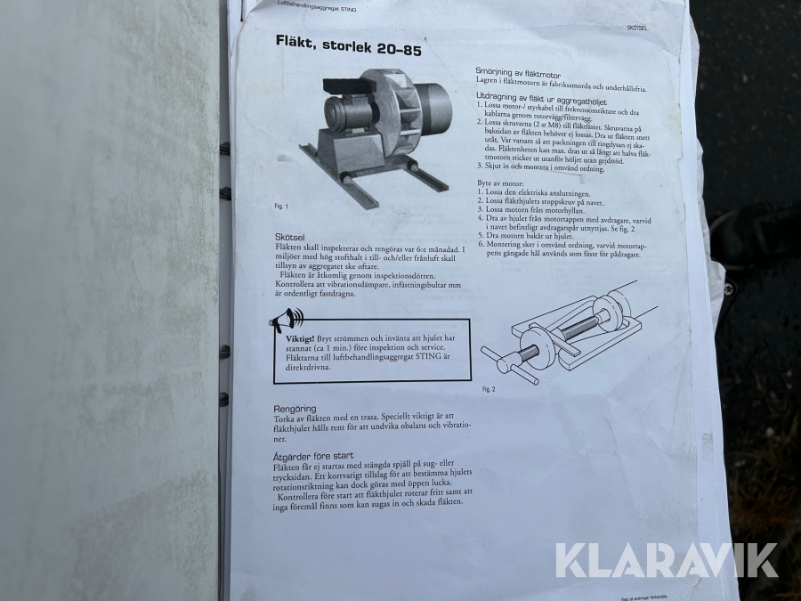 Boka frakt? Det finns ingen specifik information om frakt för just det här objektet, men om du skickar oss en förfrågan via vårt fraktformulär, så undersöker vi möjligheten. Paket, EU-pall eller större maskin? Klaravik har fraktavtal med Schenker och i de fall vi kan hjälpa till med frakt gäller det objekt som ryms i paket eller inom en EU-pall (upp till 120*80 cm och 990 kg). Det går att beställa frakt inom Sverige, dock inte till utlandet. Vid frakt på större maskiner rekommenderar vi gärna transportföretag som du kan kontakta.