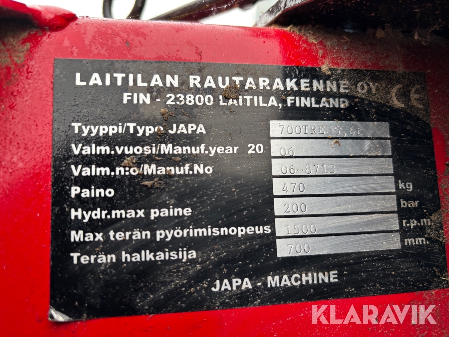 Vedmaskin Japa 700 TRE 5,6t Traktor- och eldriven.