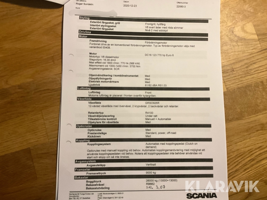 Timmerbilekipage med kran Scania R770 6x4 16,4