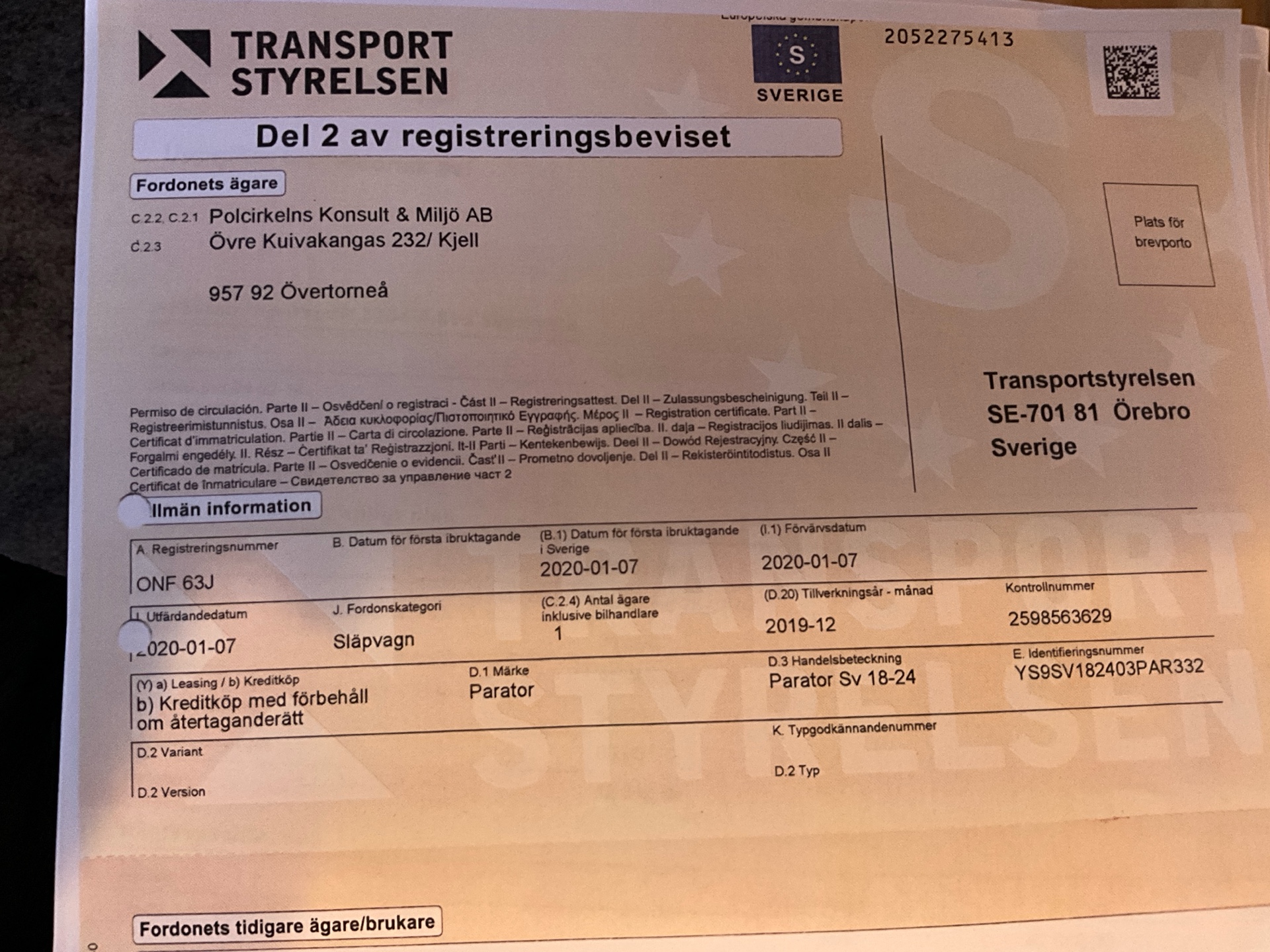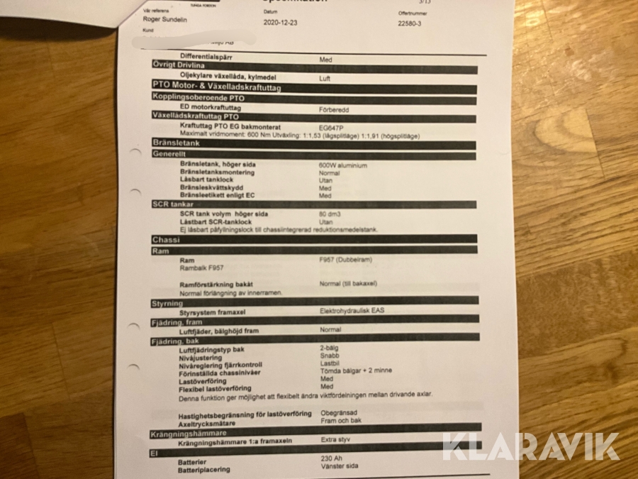 • Serie/chassinummer framgår