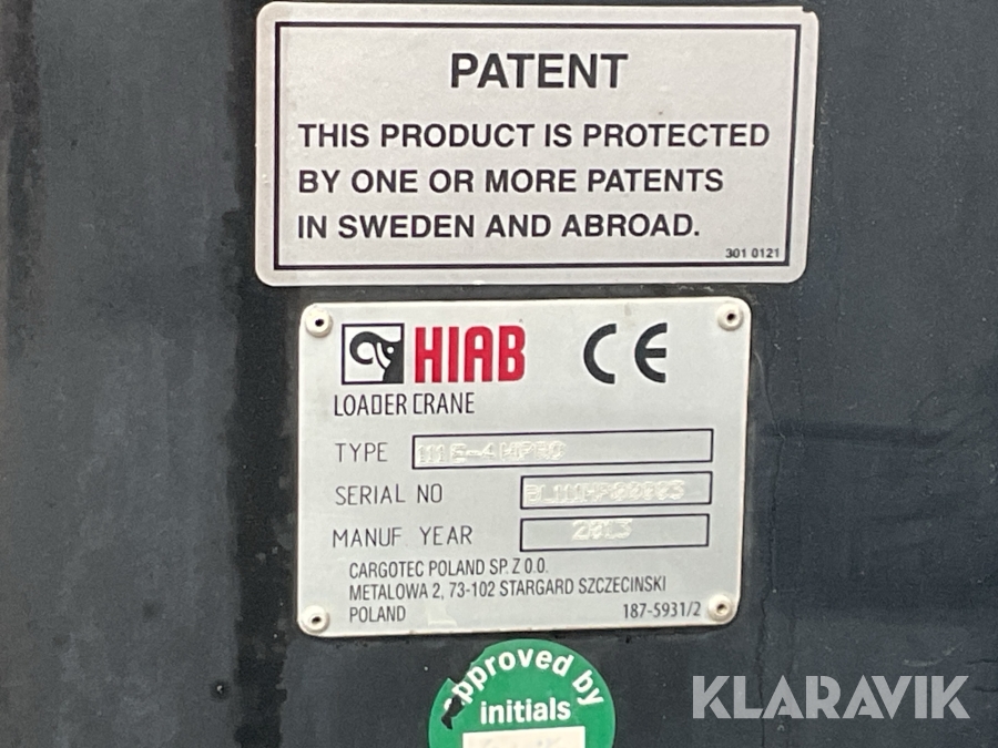 • Serie/chassinummer framgår