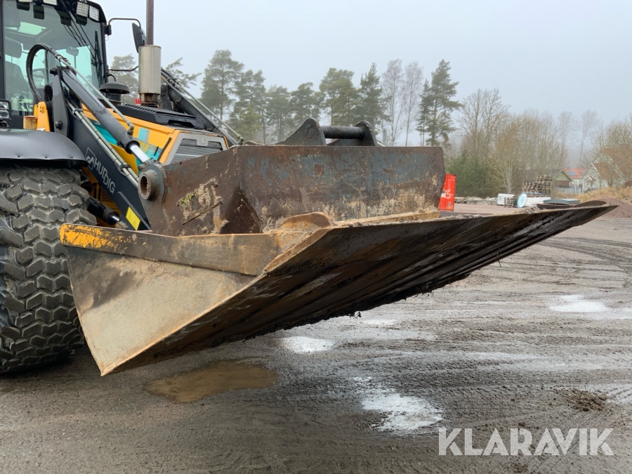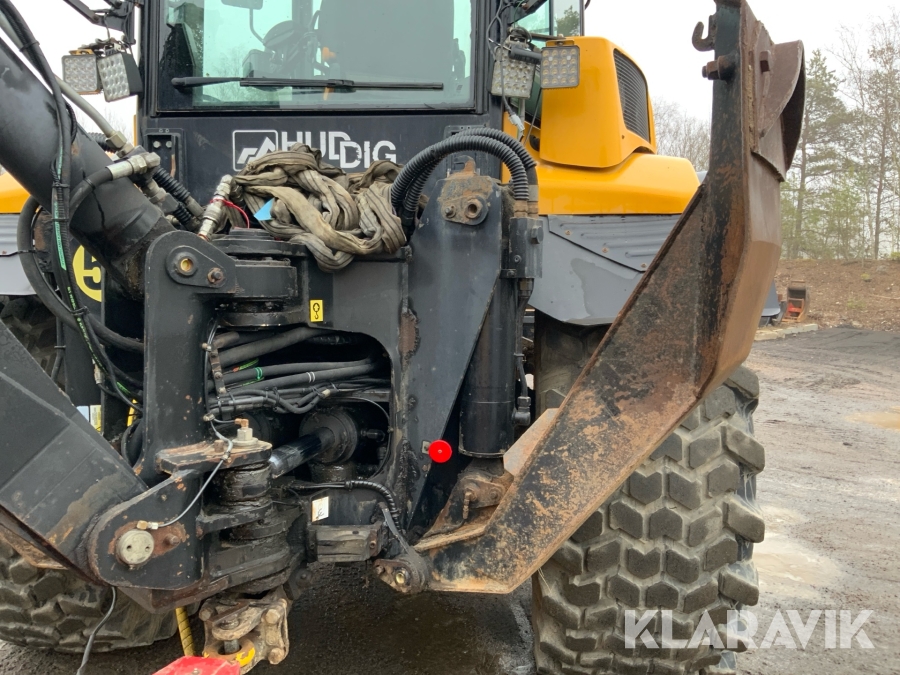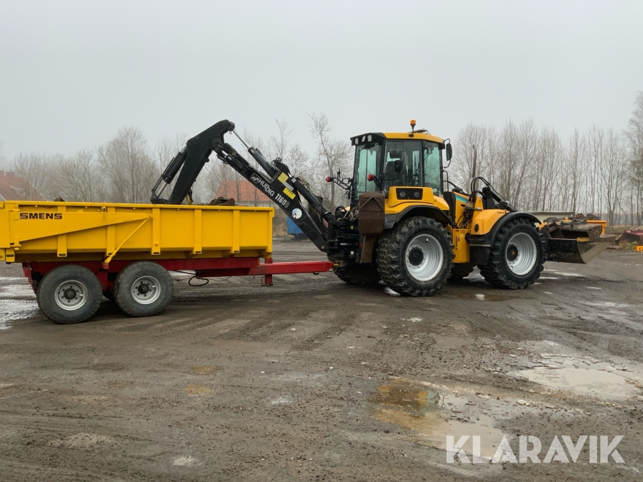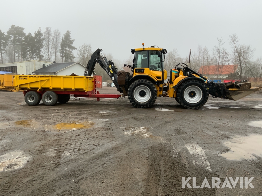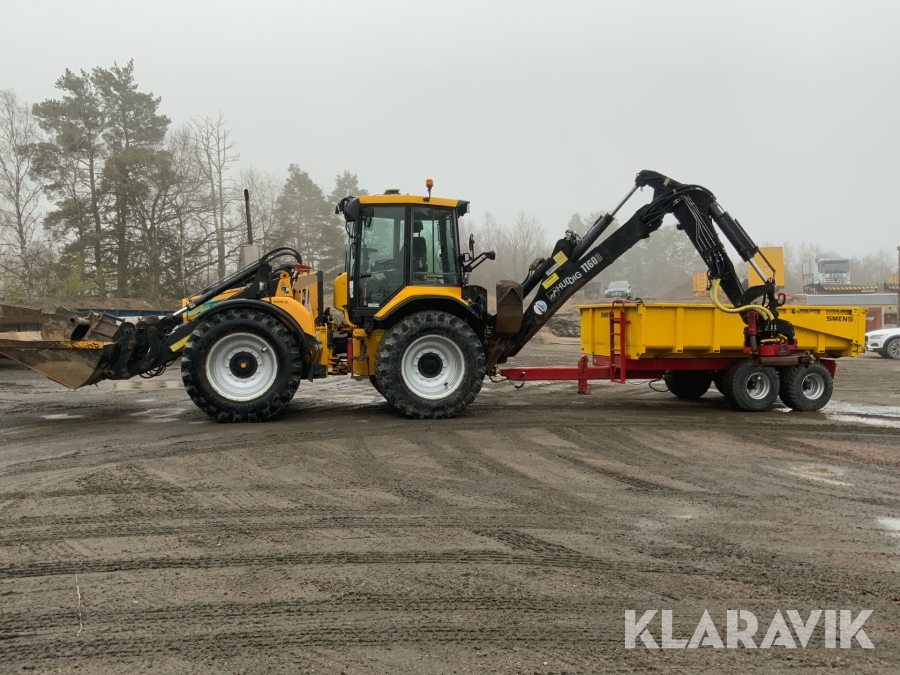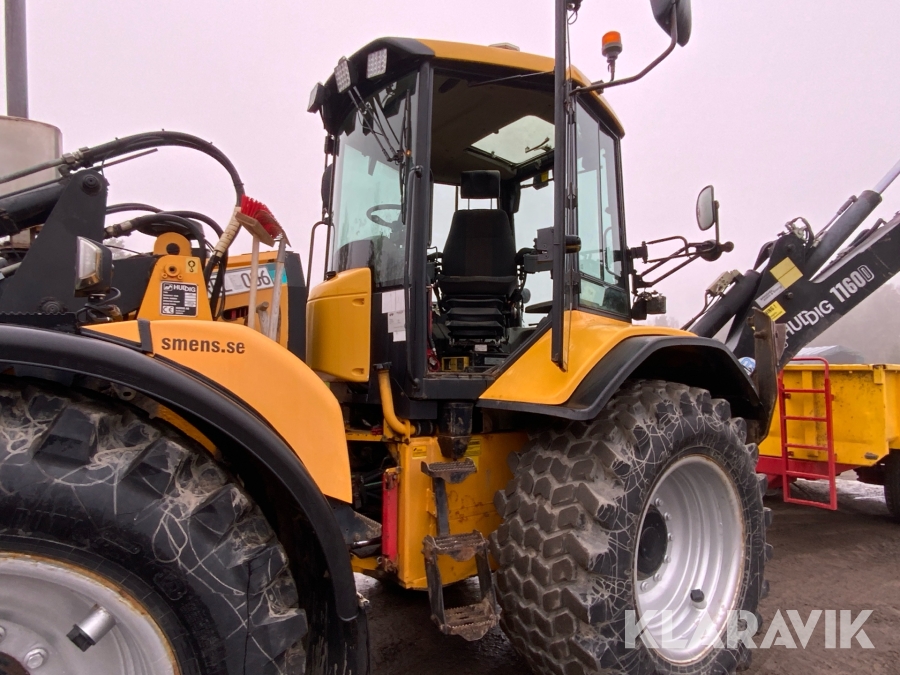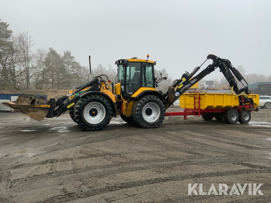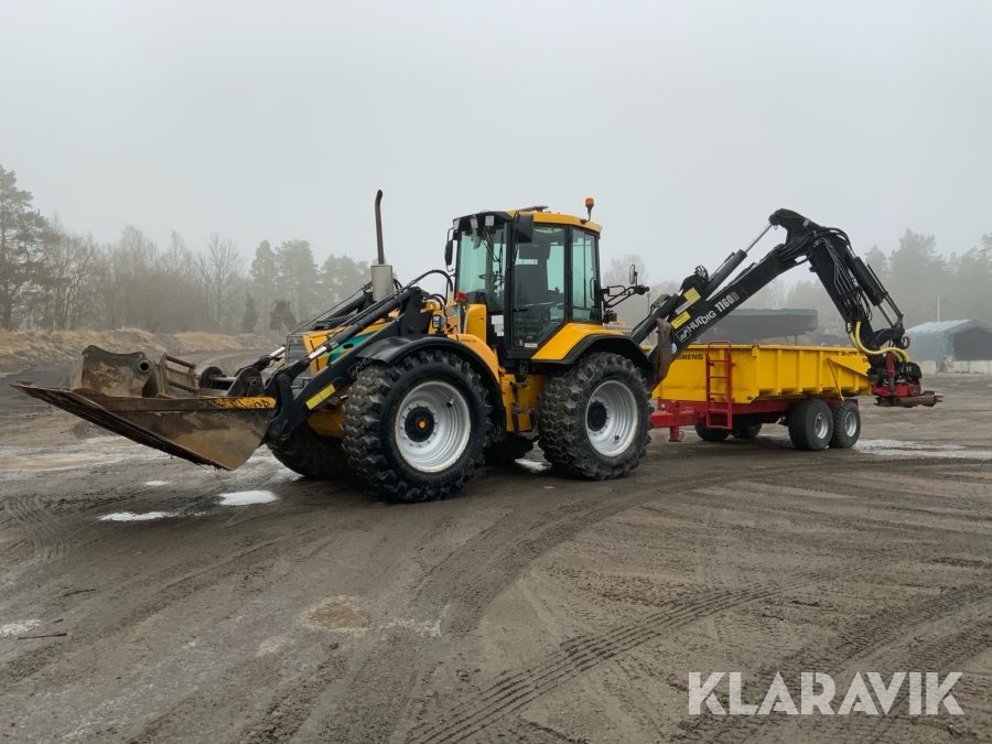 Grävlastare Huddig 1160 D med dumperkärra, rototilt och flera redskap