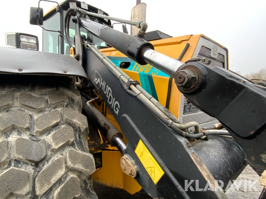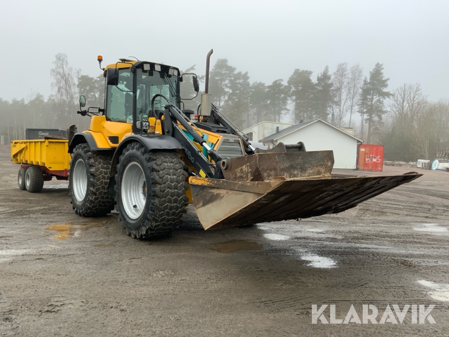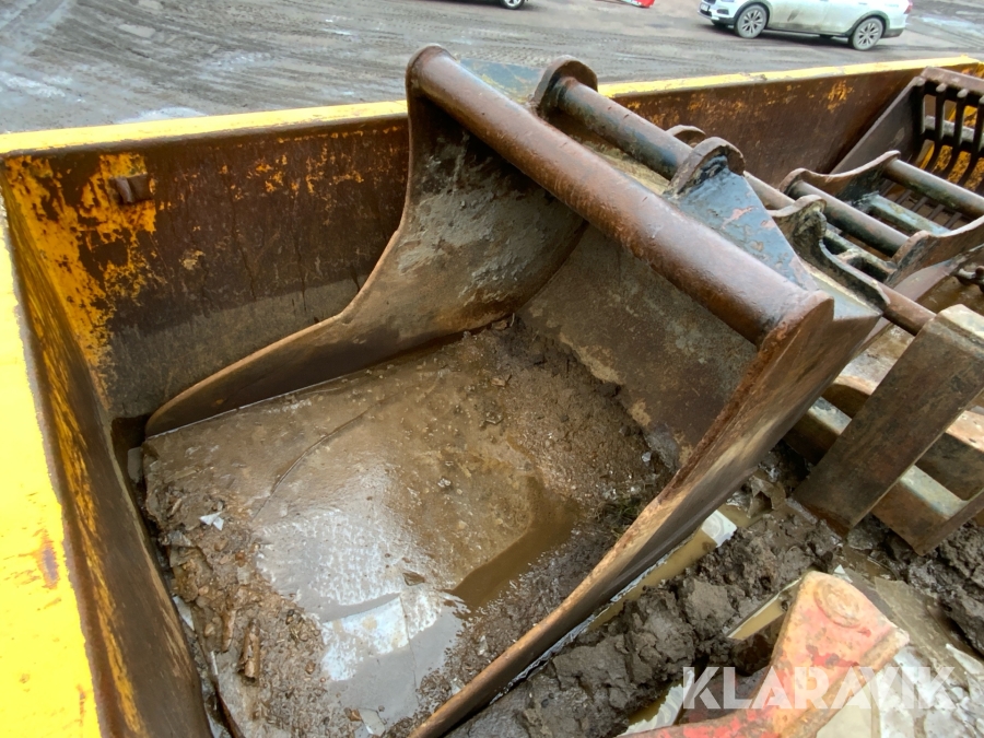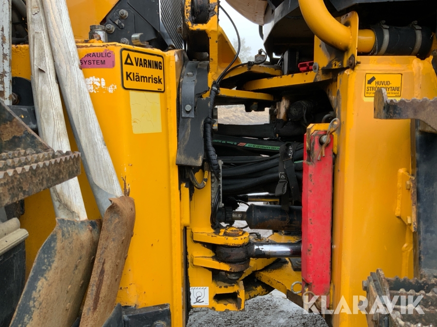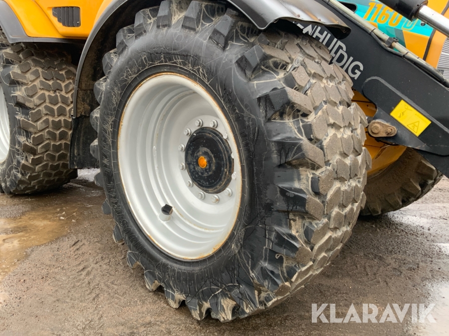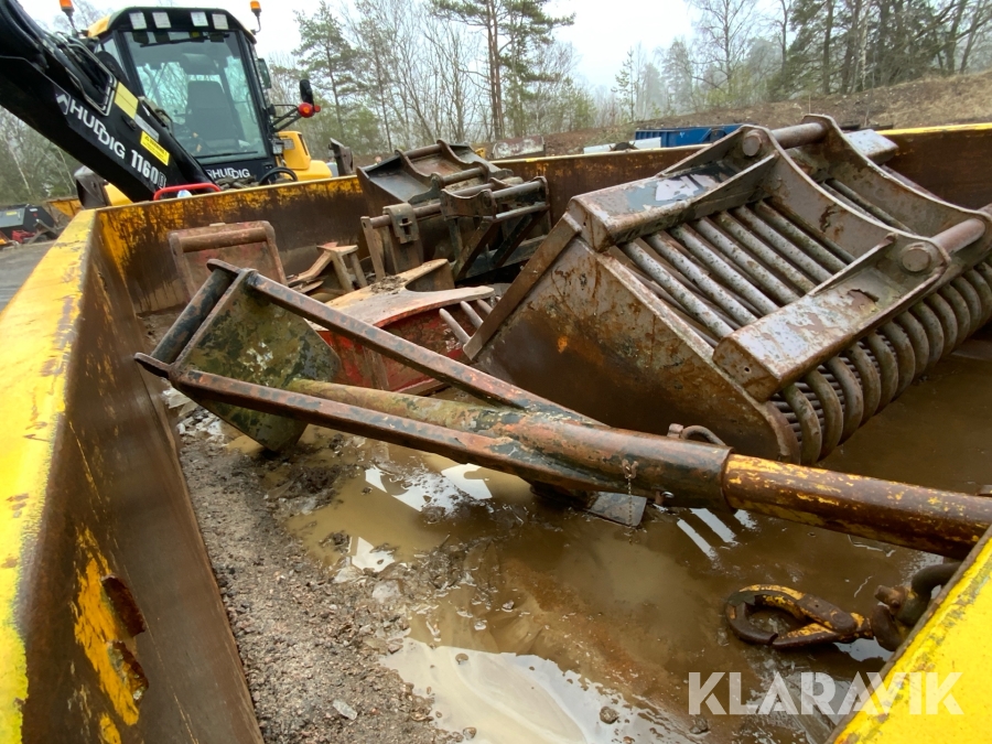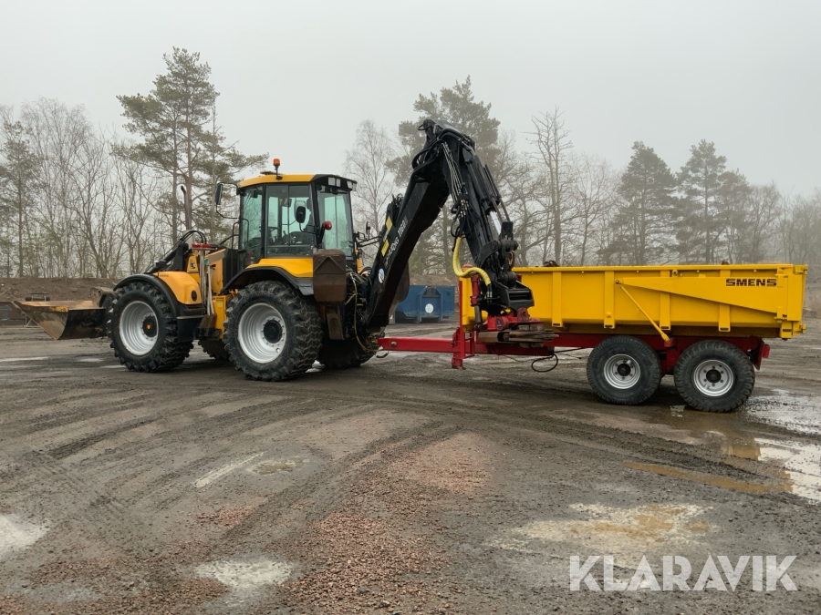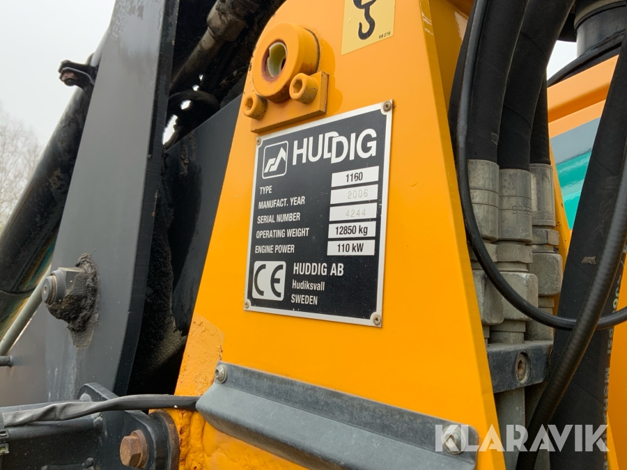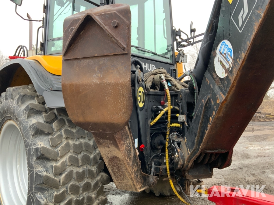 Grävlastare Huddig 1160 D med dumperkärra, rototilt och flera redskap