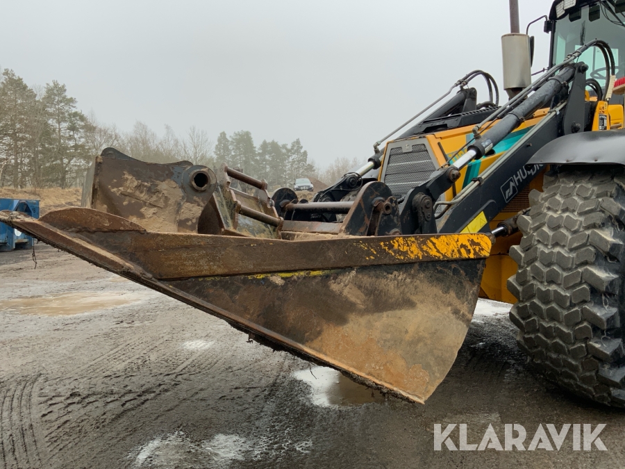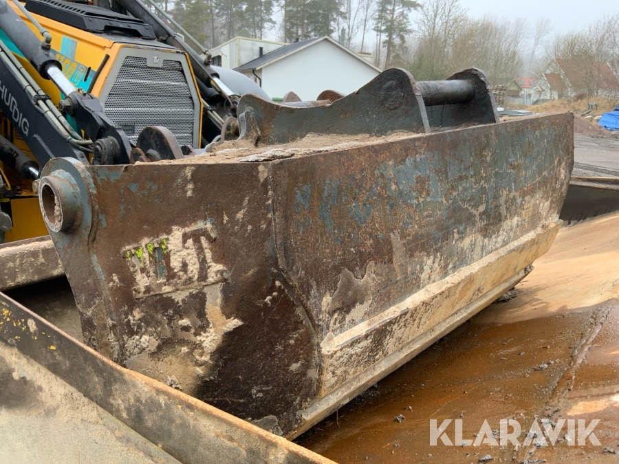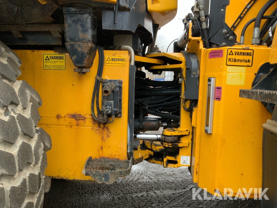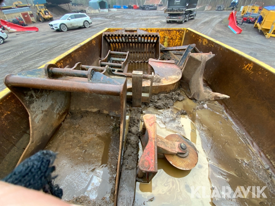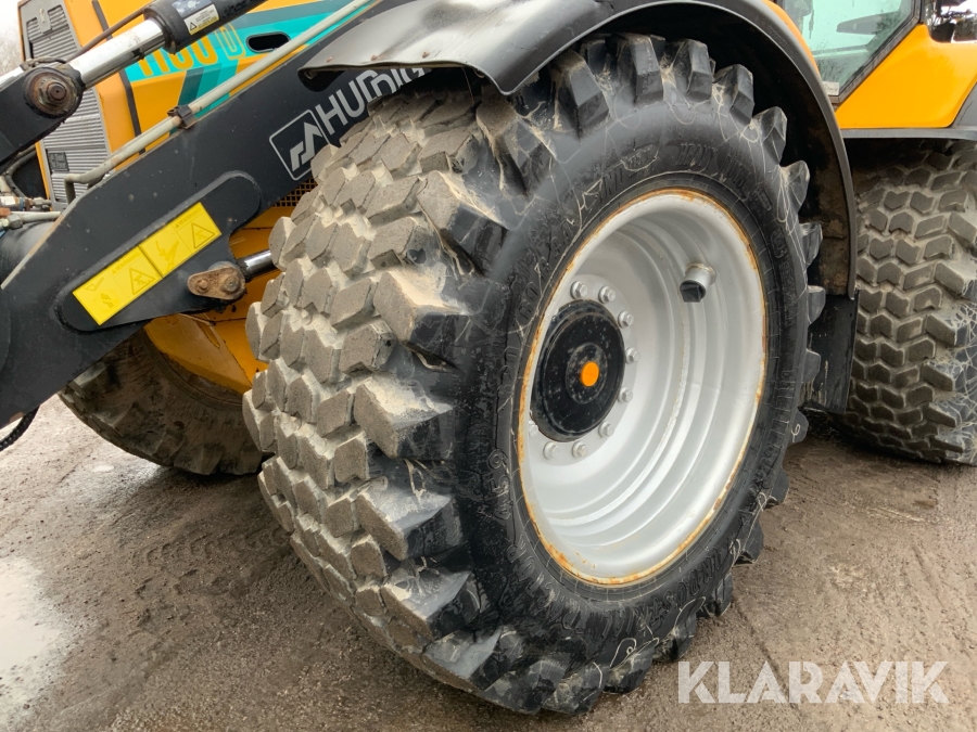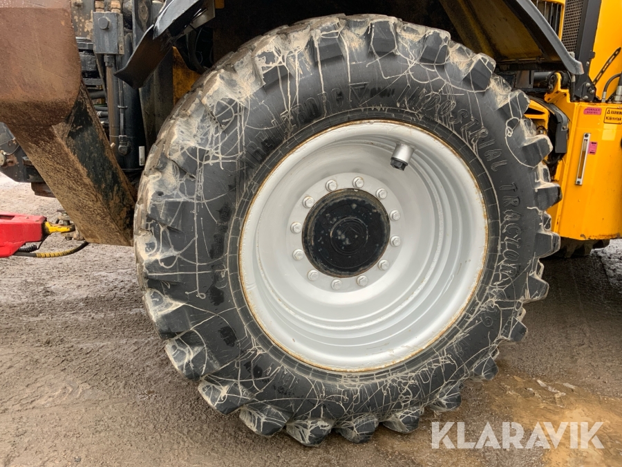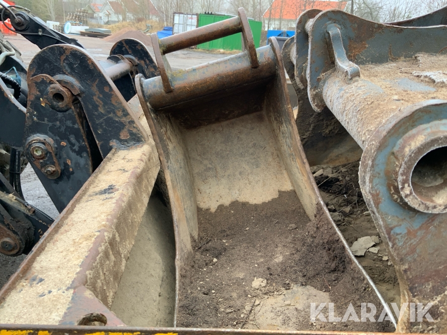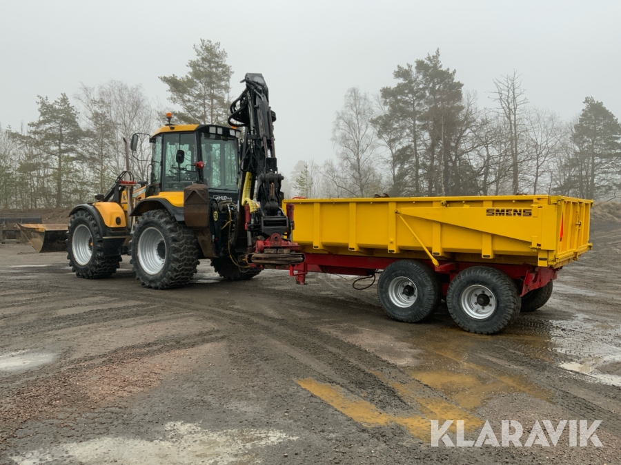 Grävlastare Huddig 1160 D med dumperkärra, rototilt och flera redskap