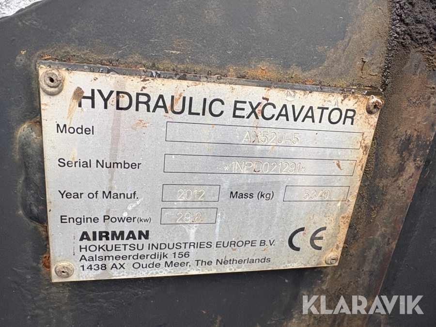 Grävmaskin Airman AX52U-5 med tiltrotator