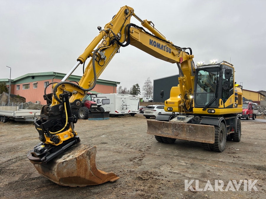 Grävmaskin Komatsu PW160-11 med rotator med grip & 5 redskap