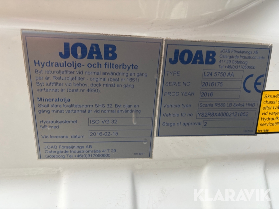 • Serie/chassinummer framgår