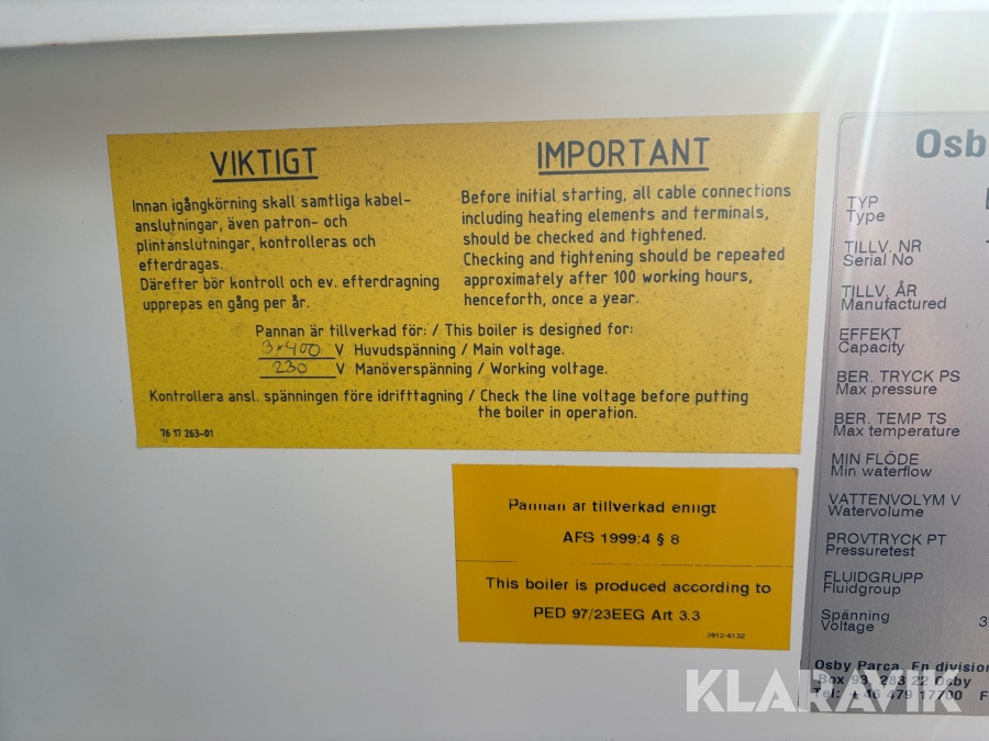 Boka frakt? Det finns ingen specifik information om frakt för just det här objektet, men om du skickar oss en förfrågan via vårt fraktformulär, så undersöker vi möjligheten. Paket, EU-pall eller större maskin? Klaravik har fraktavtal med Schenker och i de fall vi kan hjälpa till med frakt gäller det objekt som ryms i paket eller inom en EU-pall (upp till 120*80 cm och 990 kg). Det går att beställa frakt inom Sverige, dock inte till utlandet. Vid frakt på större maskiner rekommenderar vi gärna transportföretag som du kan kontakta.