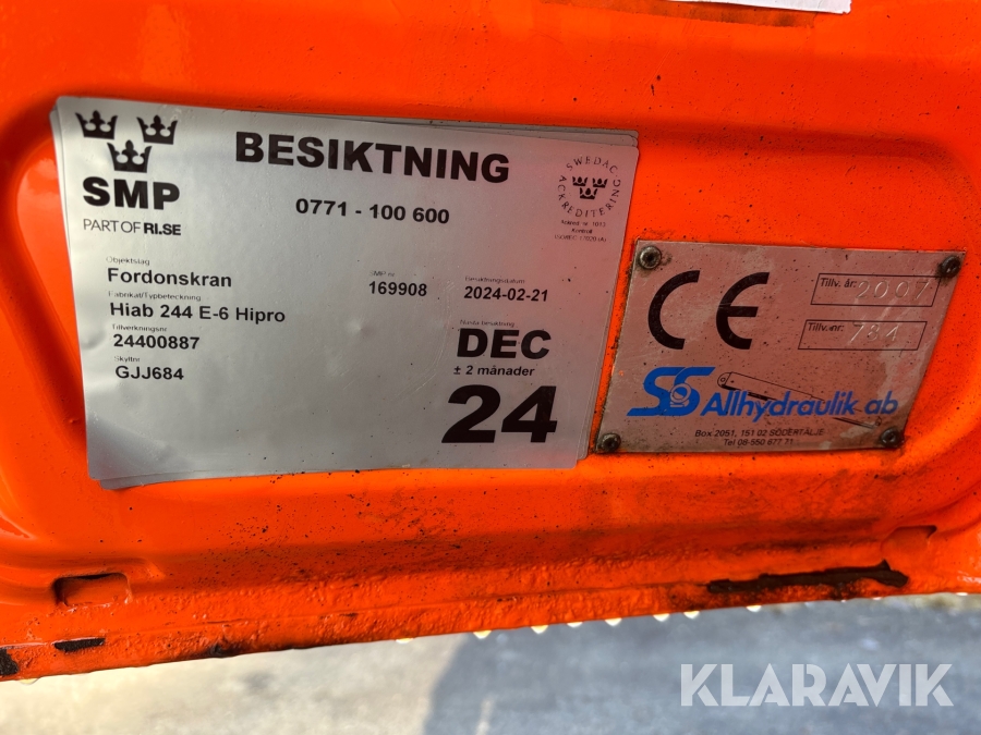 • Serie/chassinummer framgår
