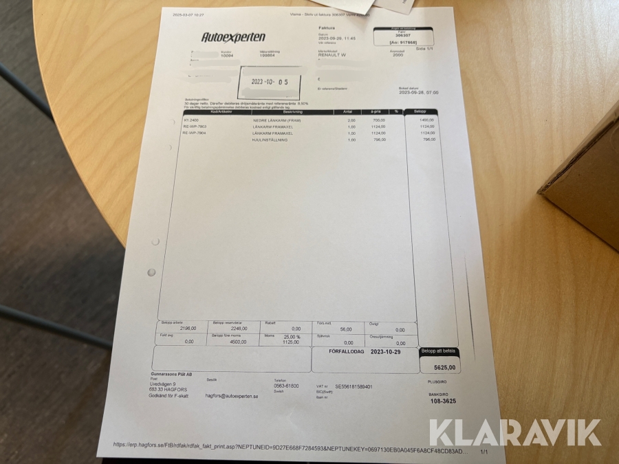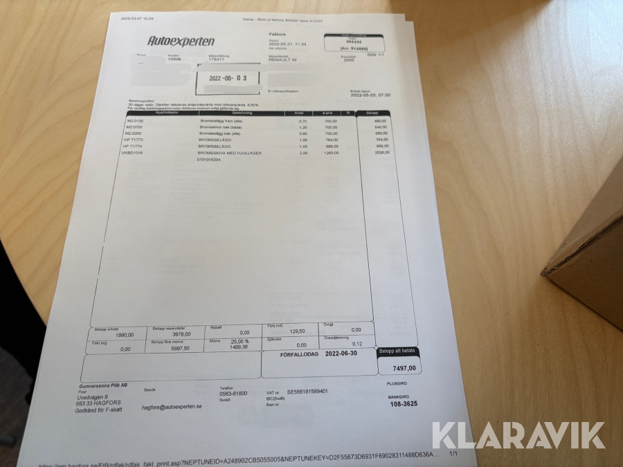 Du som köpare är skyldig att kontrollera objektet vid hämtning. Skiljer sig något avsevärt jämfört med informationen på klaravik.se? Kontakta då Klaravik innan du tar objektet från platsen. Läs fullständiga köpvillkor.