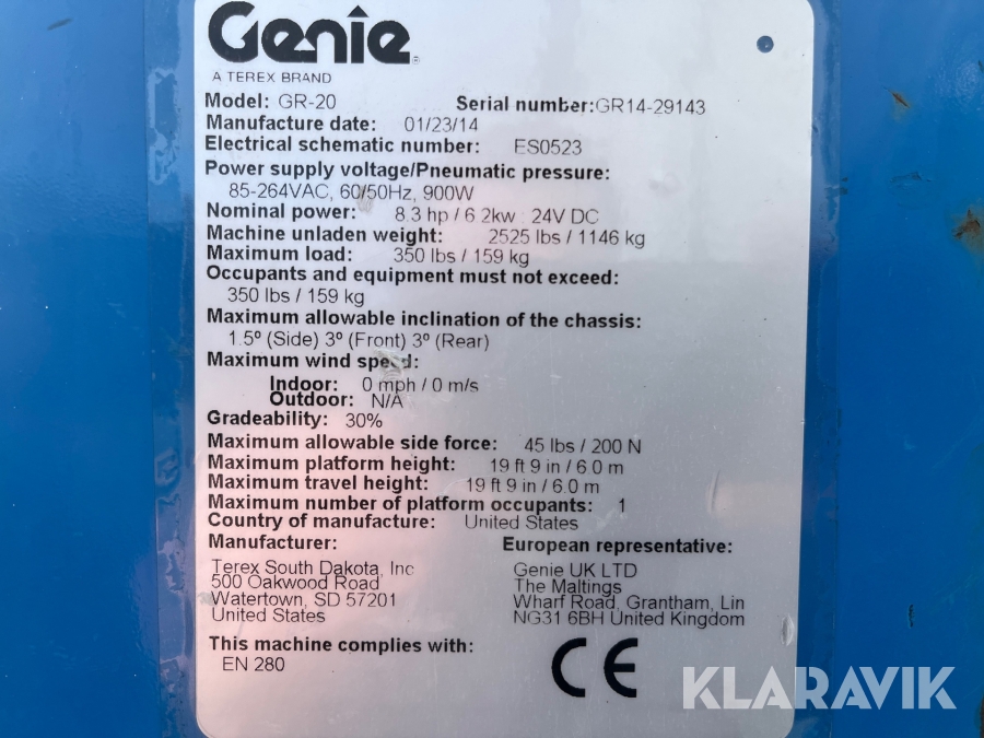 Pelarlift Genie GR-20